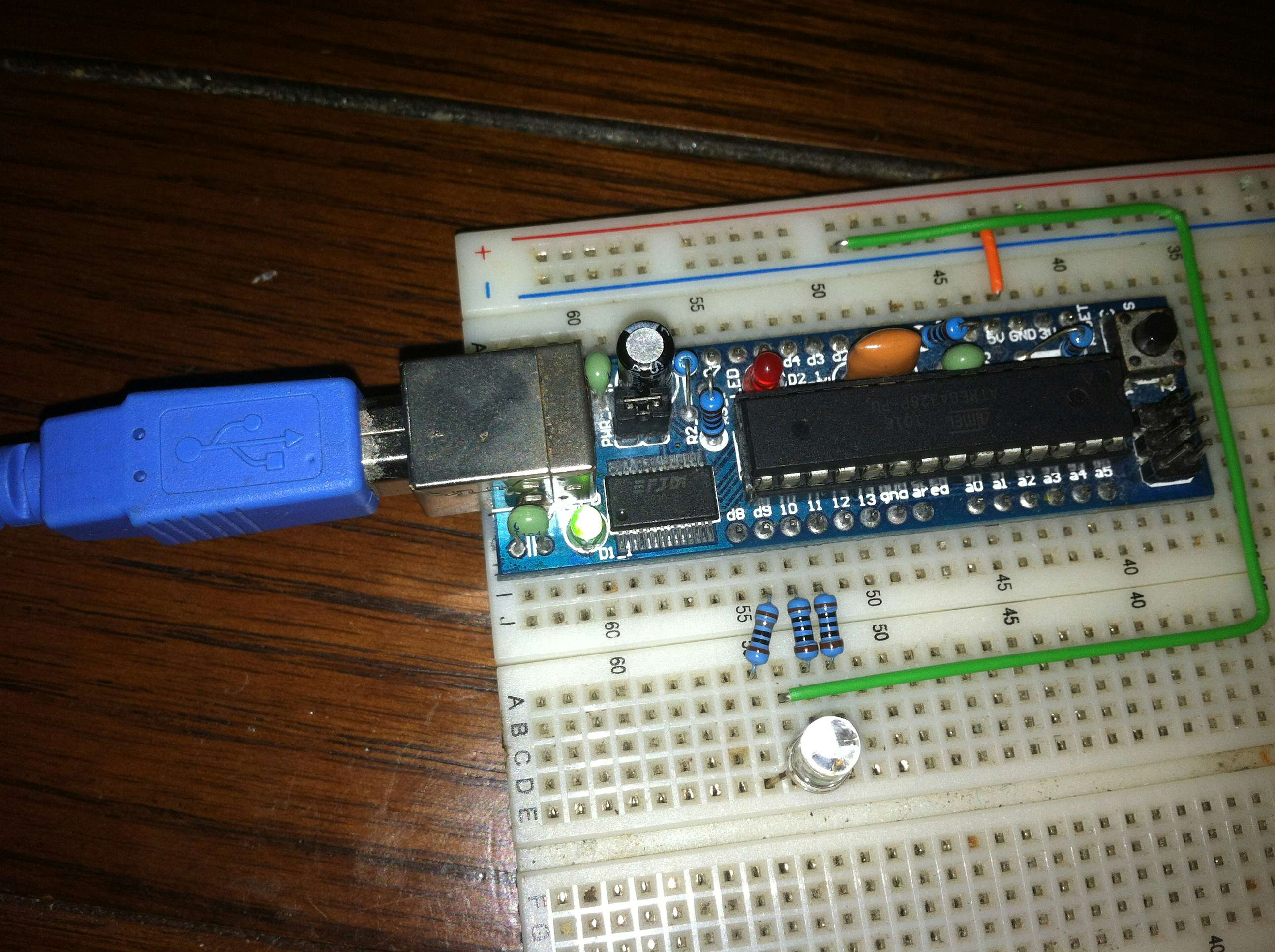 Here I have setup one of the Arduino example circuits for using one of their provided sample sketches (as Arduino programs are called) such as the LED Blink or RGB Fade. The pins are labelled on this Boarduino, just check the one you are thinking of buying.