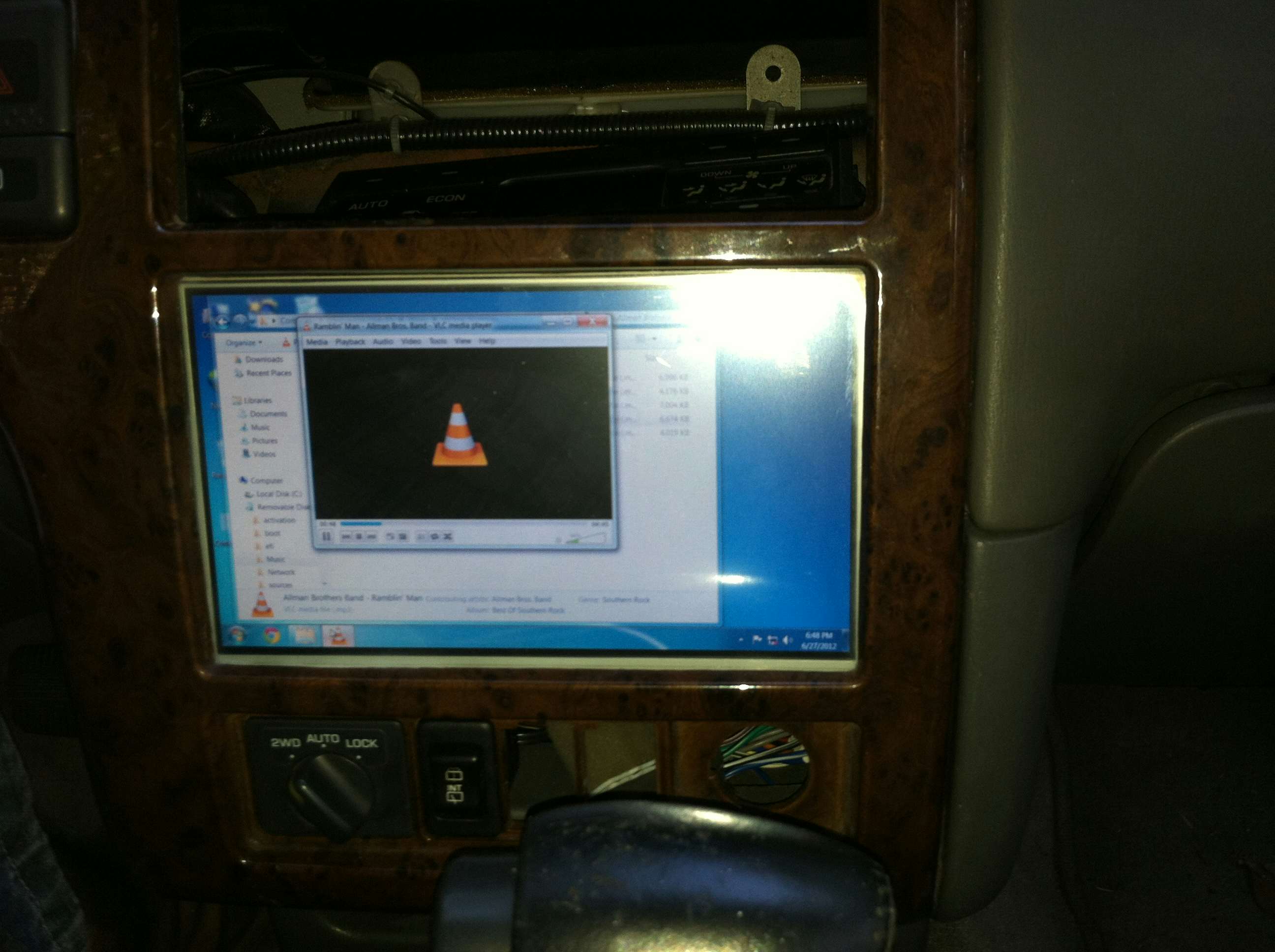 I would like to find a refined method of connecting the external hard drive to the computer. I have the drive in the front of the car connected to the 15 foot USB 3.0 cable. This works although I do have to supply additional power which is not unexpected it’s just another gotcha. The drive doesn’t enumerate as quickie as other devices which I suspect is an issue with Windows 7 not natively supporting the USB 3.0 controller and having to wait for the drivers to load.