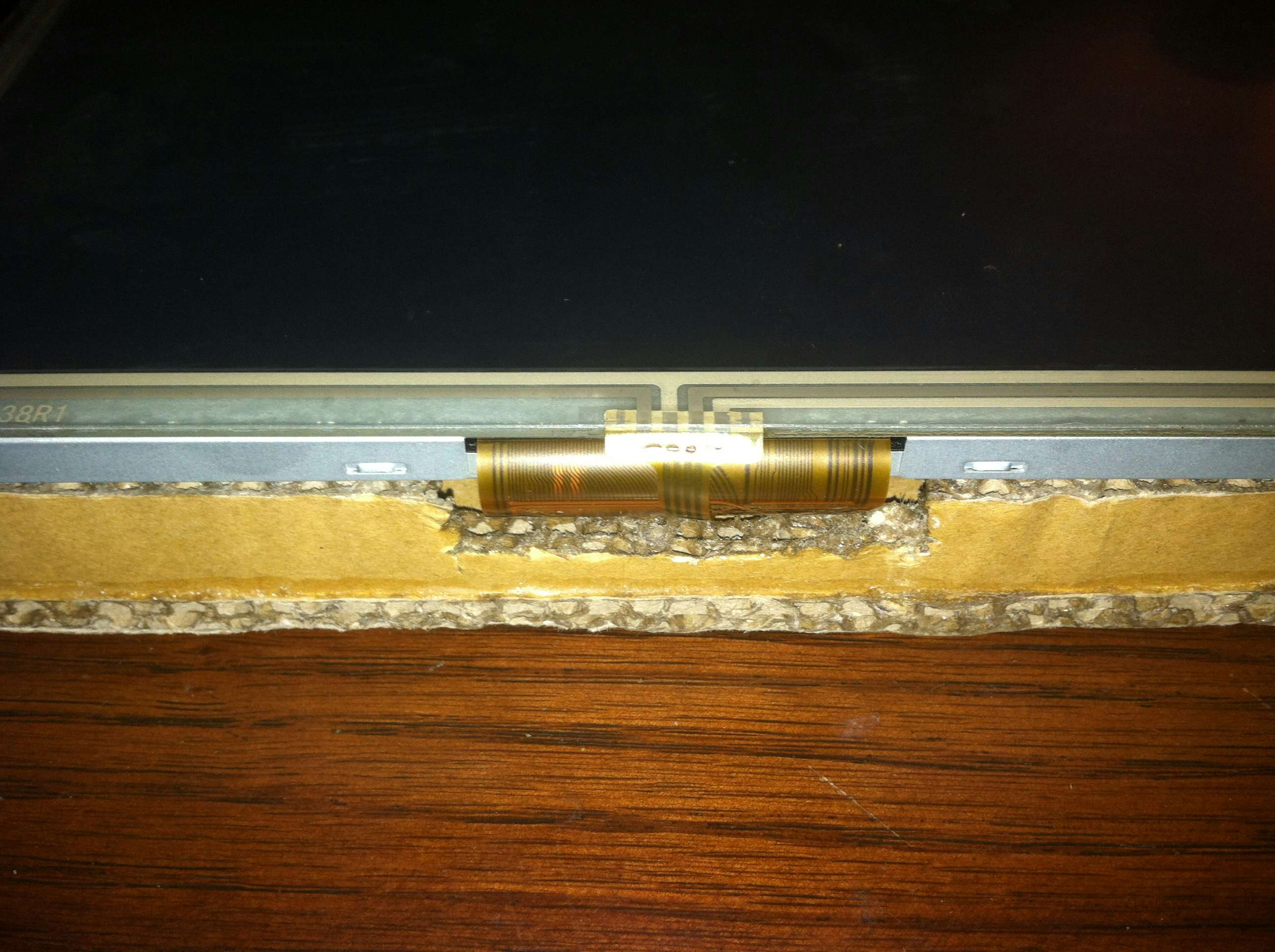 Next the LCD panel is fitted into the frame and the backplane is fitted next connecting the LCD data cable and the Touchscreen data cable. The backplane is secured by 4 small dabs of epoxy (not pictured) that will ensure the backplane stays in place for even the most ferocious of finger presses. I can easily cut through these with a utility knife or the blade on my Dremel should I need to access th LCD assembly again.