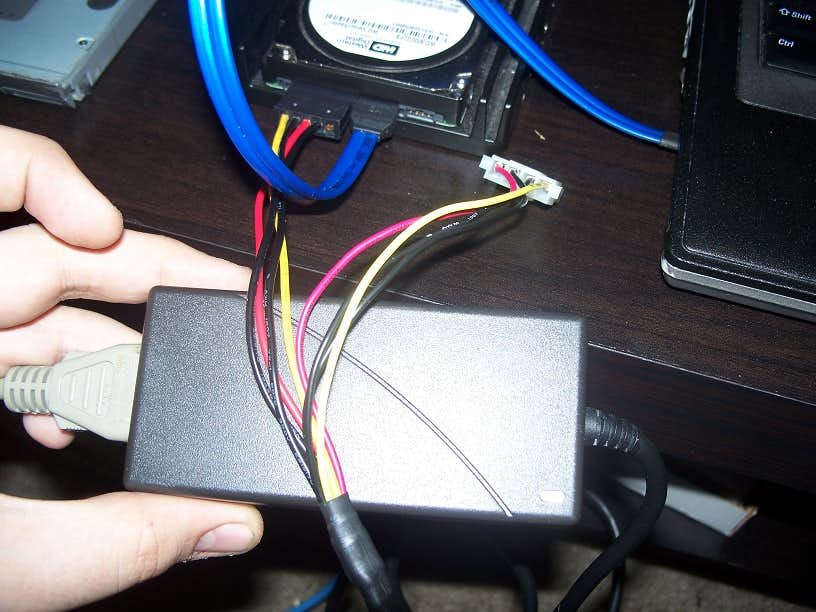 This is the power supply I modded, adding molex and SATA power connectors. This PSU gives out 5v @ 2.2a and 12v @ 1.2a, so it can power any drive I throw at it.