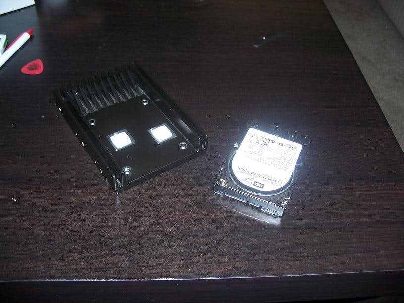 Side profile of the velociraptor next to its heatsink. Side profile of the velociraptor next to a stock laptop hdd.