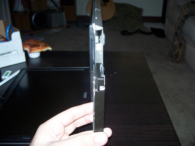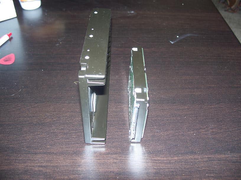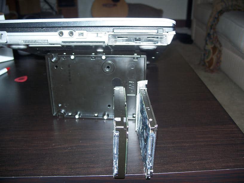 The drive profile compared to the laptop profile. The hdd will push up through the PCMCIA slot, which is going to be removed. The drive running externally next to the stock laptop hdd.