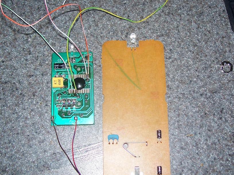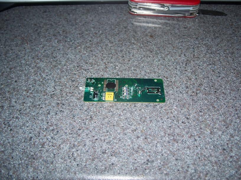Far out and close up shots of the LCD remote board, very sparse and thin.