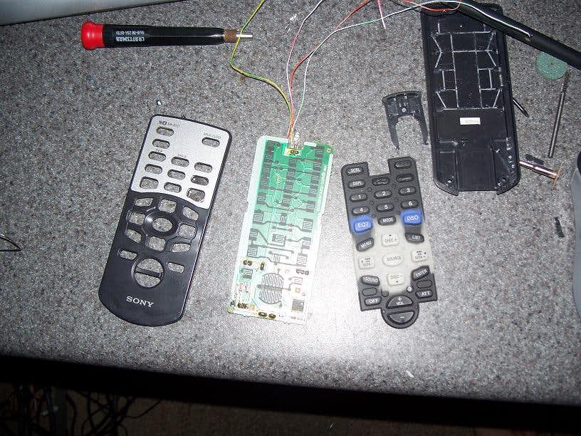 The first promising shots of the project, appears that once those cross bars are removed from the back of the Sony remote, there should be ample room.
