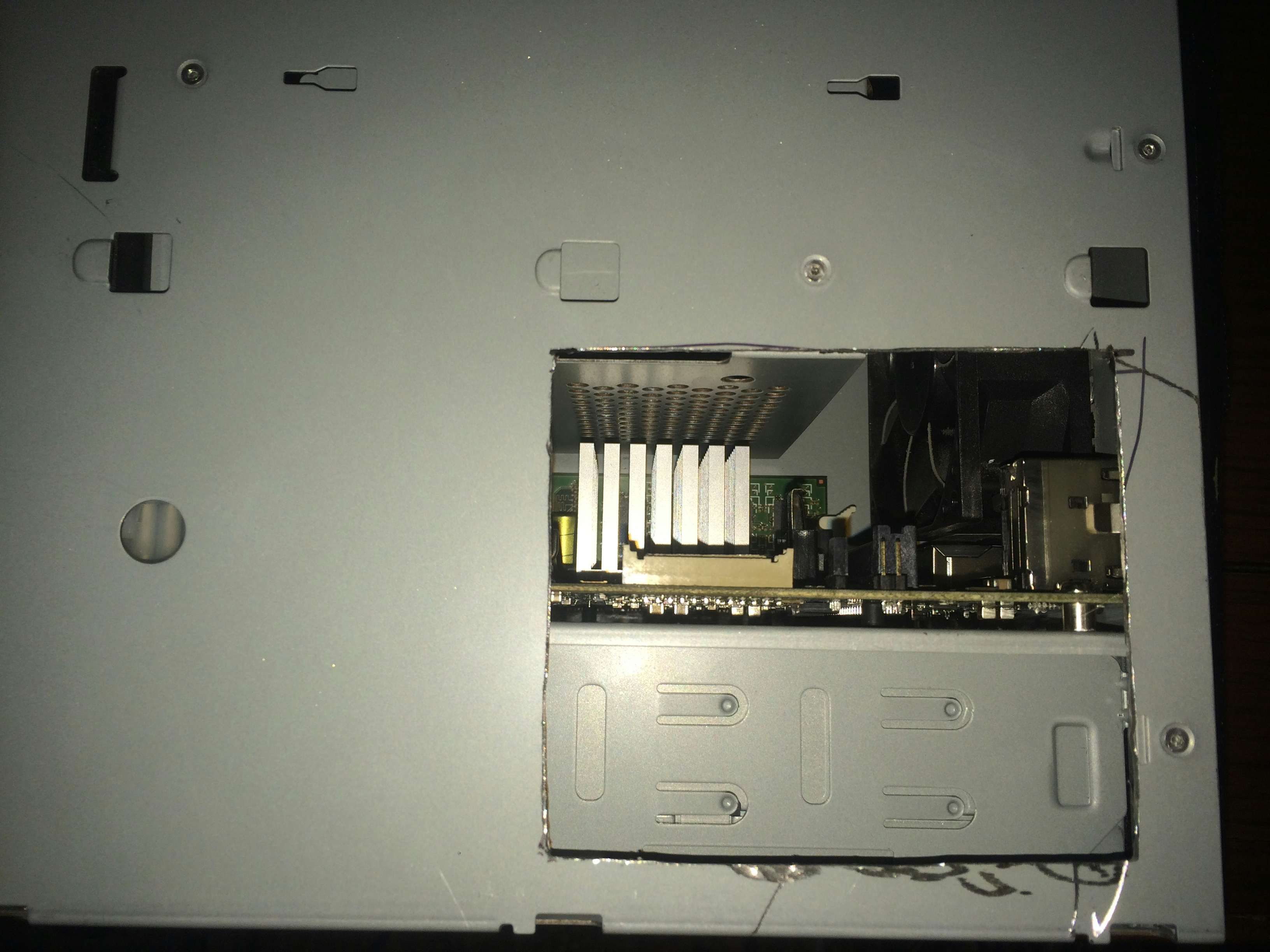 Lastly make a cut in the rear panel to expose the new VGA port, you could probably make the cut a bit more professional looking but the looks of the rear of this particular device aren’t all that important at least for me so there you have it. Button up the ex495 and enjoy your new VGA connection. Use a USB keyboard and mouse and hit DEL during the POST to access the BIOS itself.