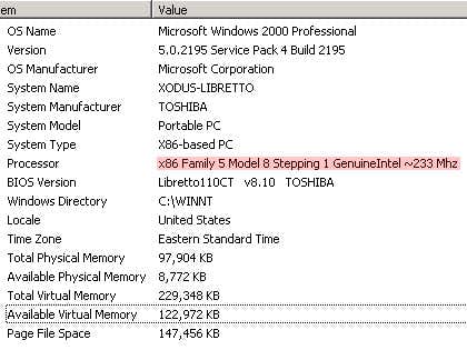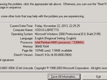 Below are screenshots with the relevant information highlighted obtained from using the DXDiag window and also the System Information utility. Each provides slightly different information about CPU and RAM.