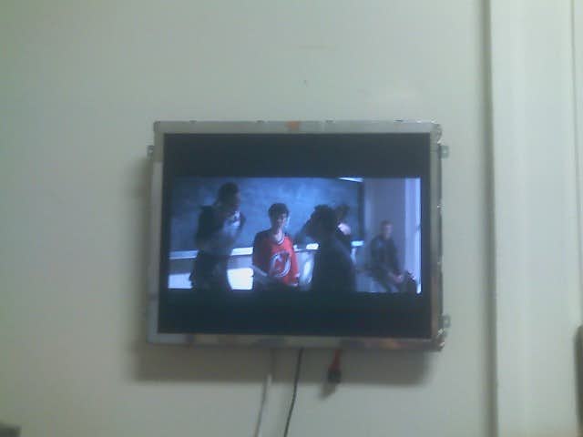 Now for the meaty stuff, the new wall mount monitor, Its crude but works, I mounted it using some fairly thick wire kinda just tied to the back of the monitor. It works fine and no signs of it failing. I will mount it properly one day, but its not a foremost concern at the moment.