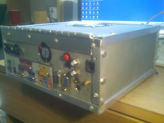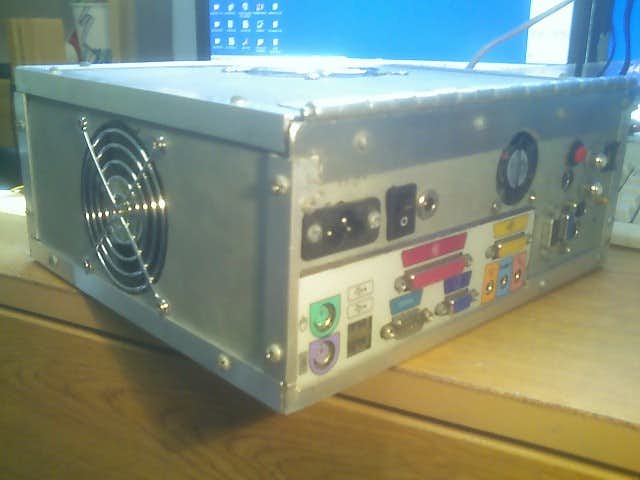 This is a pretty important shot showing the back as it is now. The silver little Jack is where you plug the cord to power my monitor. Another oddity is the remote fPanel jack I added at construction, its the Serial looking jack next to the VGA plug. It has the wiring running to it for the power switch and the power and hd led’s. It would let me have a way to force shut it down via a cable if it were to go under. I’m a very lazy person, so not having to get up, is a big plus.