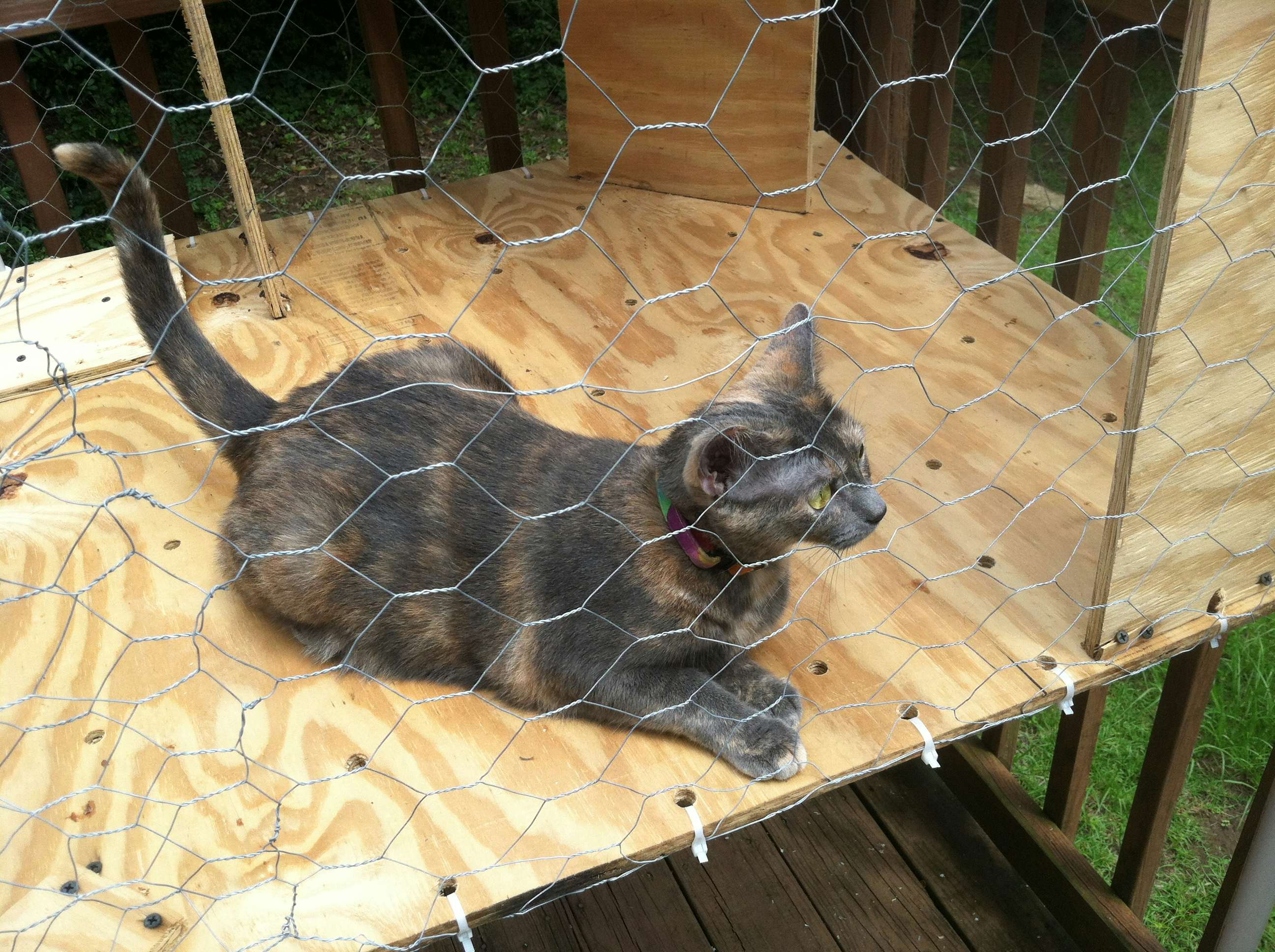 Here is my kitty hanging out in the sun and enjoying the new freedom that this type of enclosure provides.