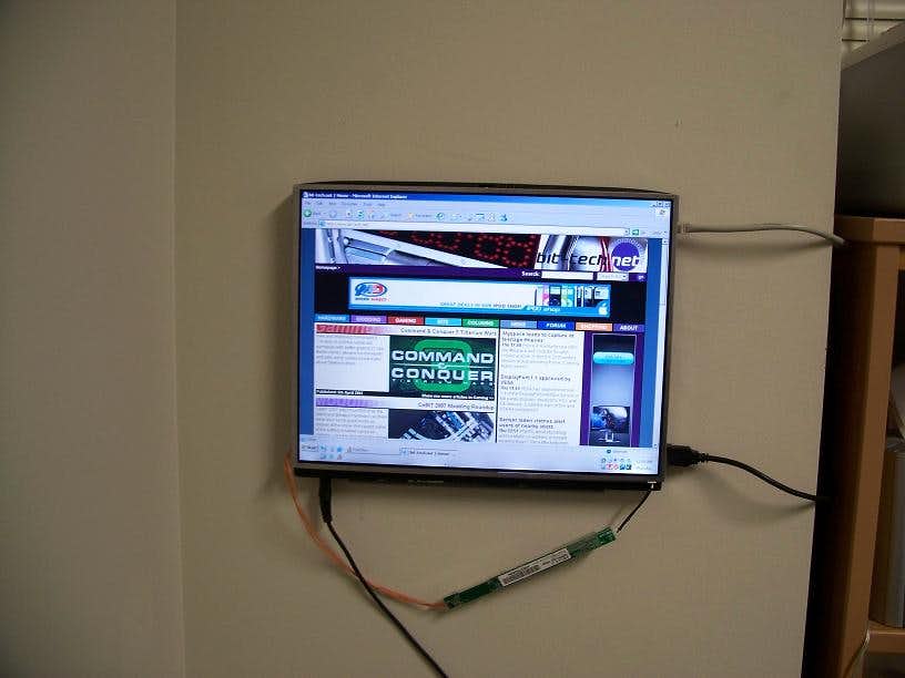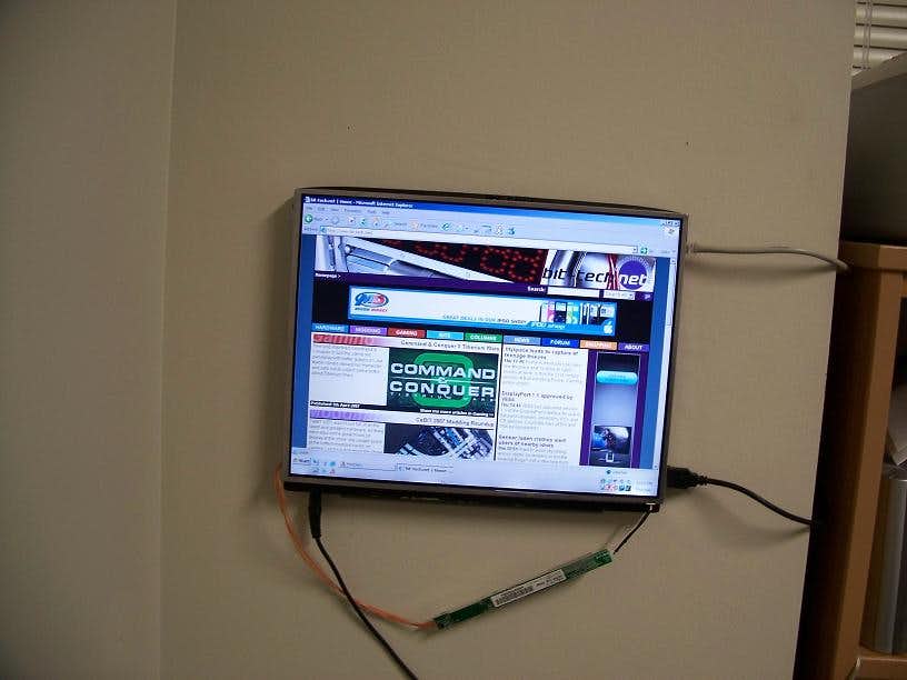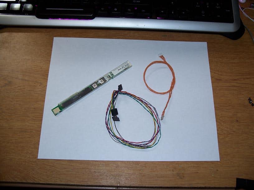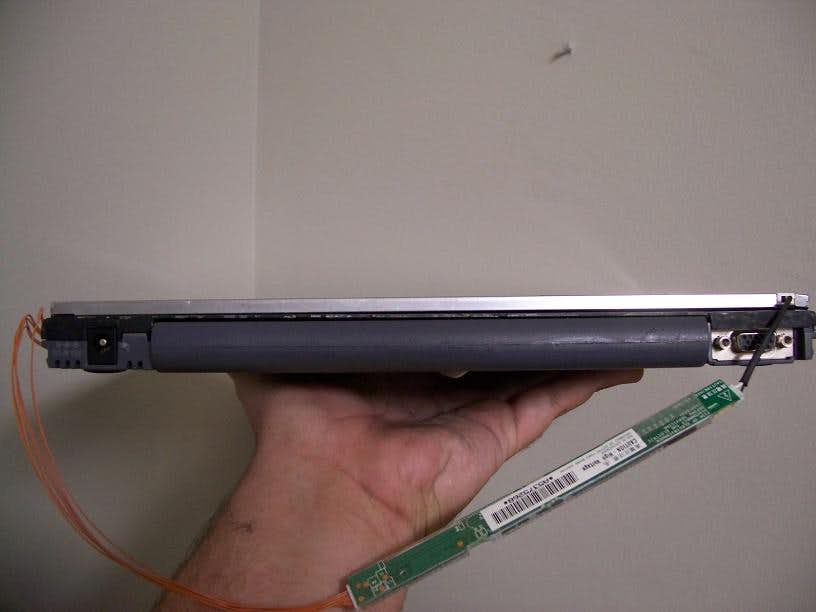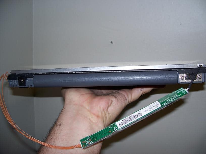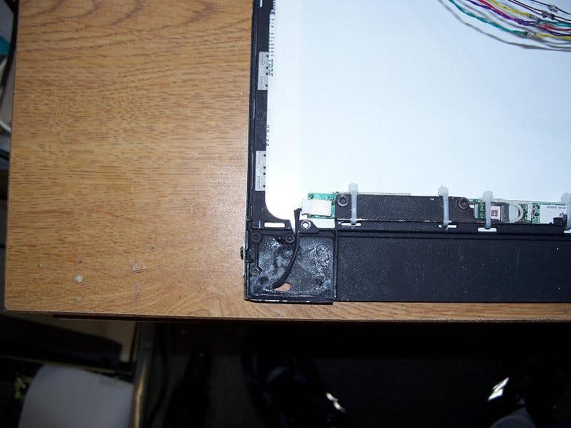 The inverter is mounted about 2mm behind the lcd to cut down on interference and the cathode wire is run through the front into the inside to the inverter, it almost not long enough.