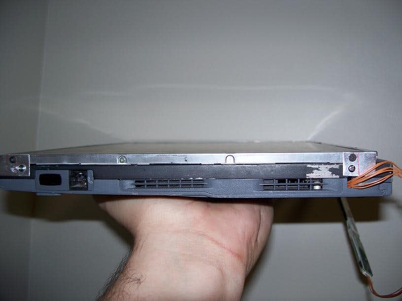 Oddly enough this entire unit turns out to be thinner than the LCD monitor I use for my Media PC that hangs on a wall, It is also thinner than my Samsung 204b’s. The unit as a whole is slightly thinner than the laptop was to begin with. Also the HDD and Ram slot are still accessible from the back. A big bonus when you are constantly switching hardware. The laptop can also be docked back into the original docking station in case I needed to load a new os on it.