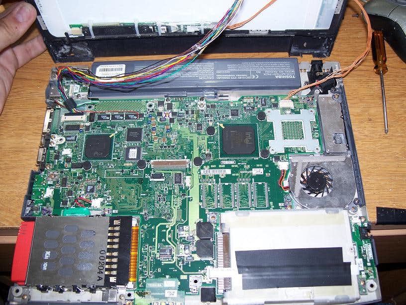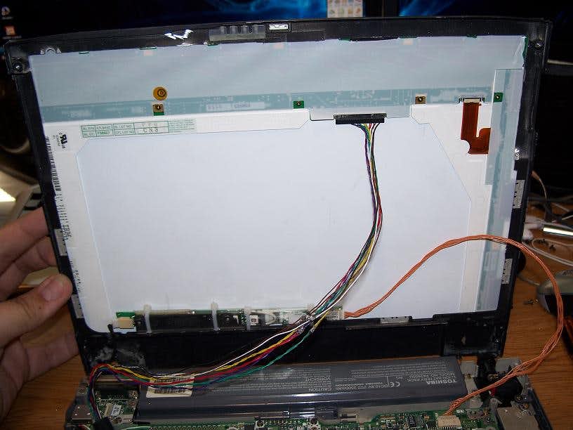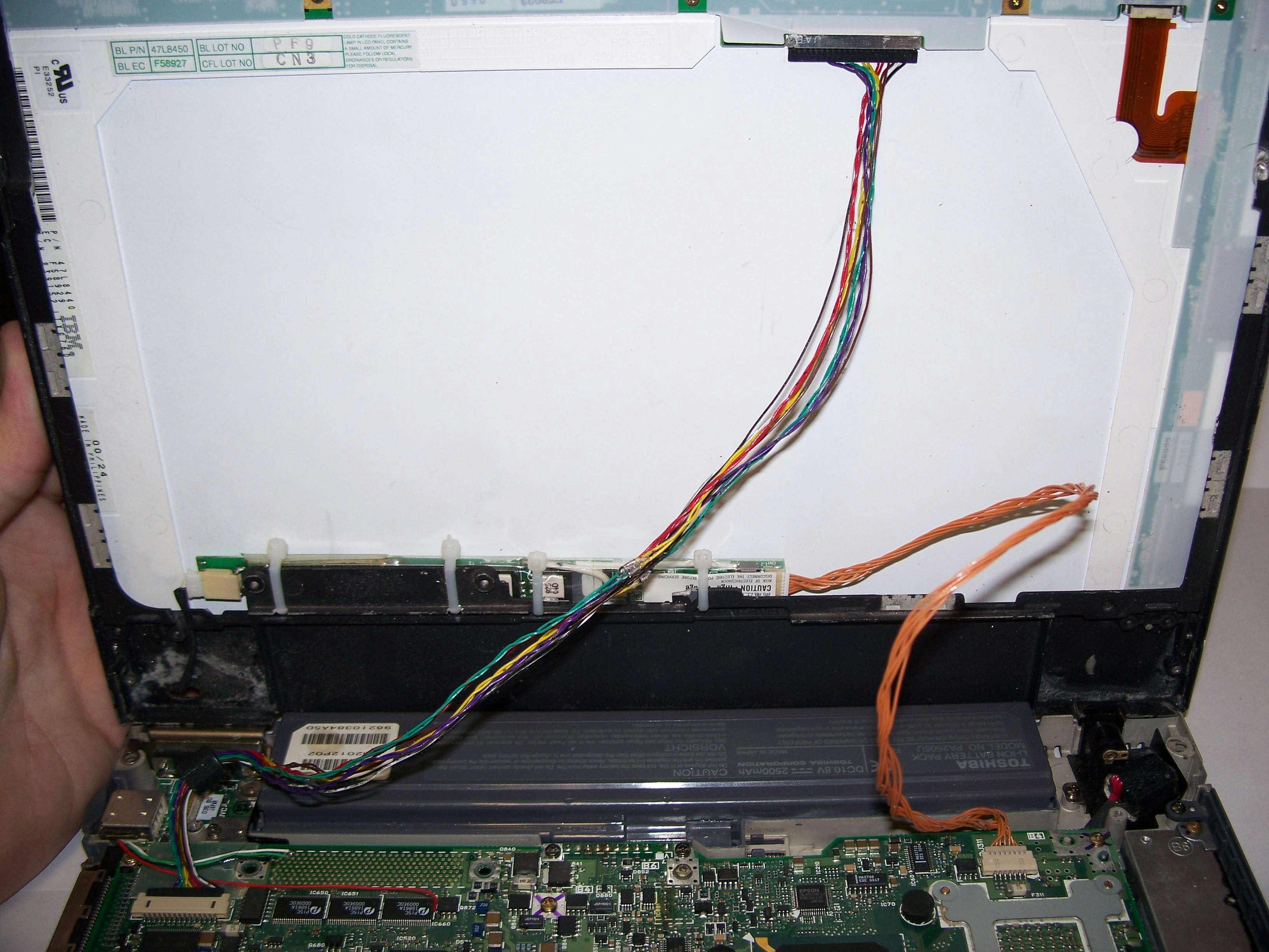 A little background on this computer may help clear up some future questions. First of all this laptop was a 40 dollar purchase from eBay, bare-bones. It did not come with any additional ram or hdd, those I put in myself. It also came with a cracked lcd. At the time I was going to replace the lcd with one I recovered from a busted Dell Latitude CPi. The transplant was a success but only after I rewired the LCD cable to the standard LVDS pinouts. The original lcd in the Toshiba used the same interface, but a different connector.