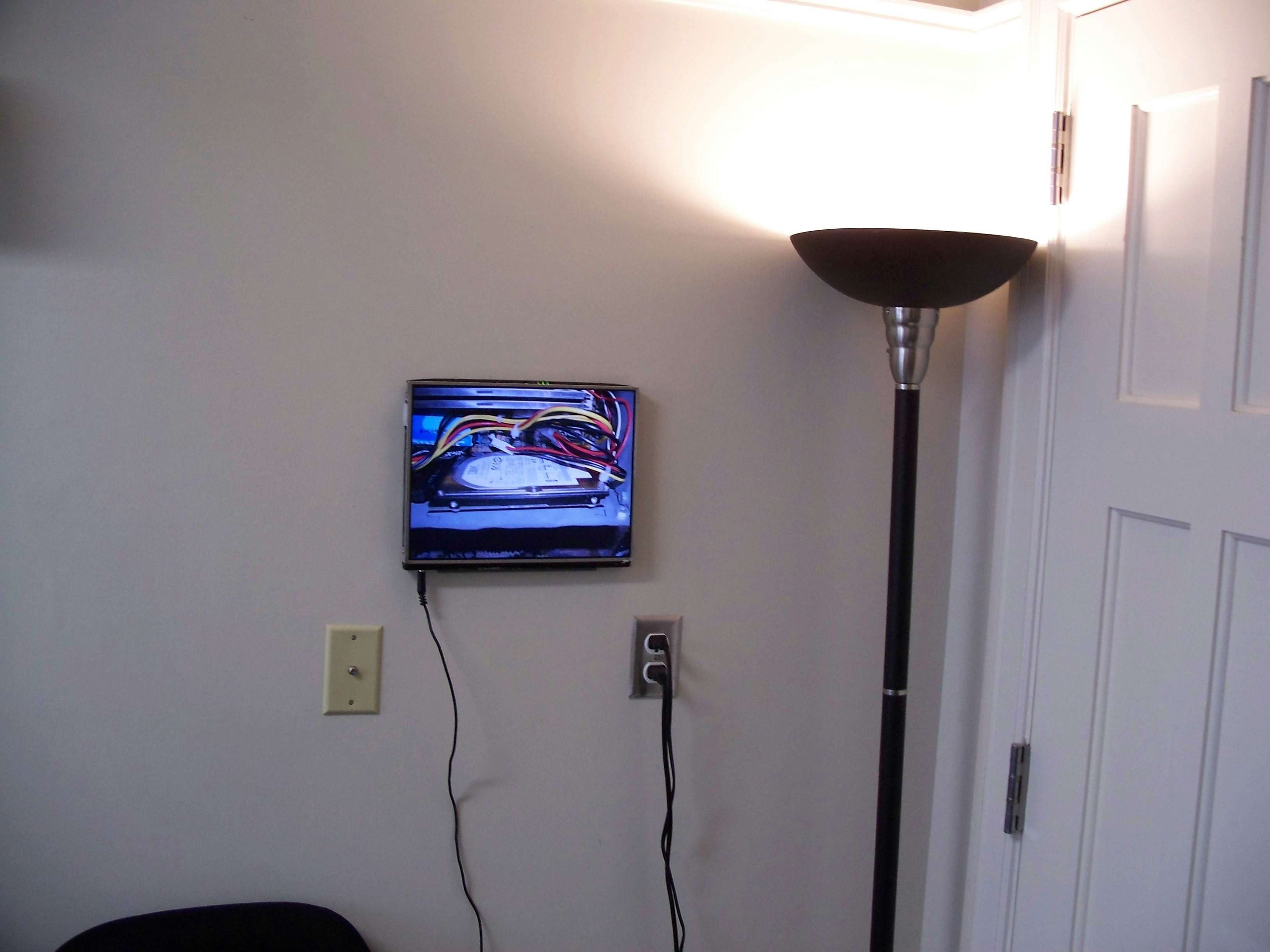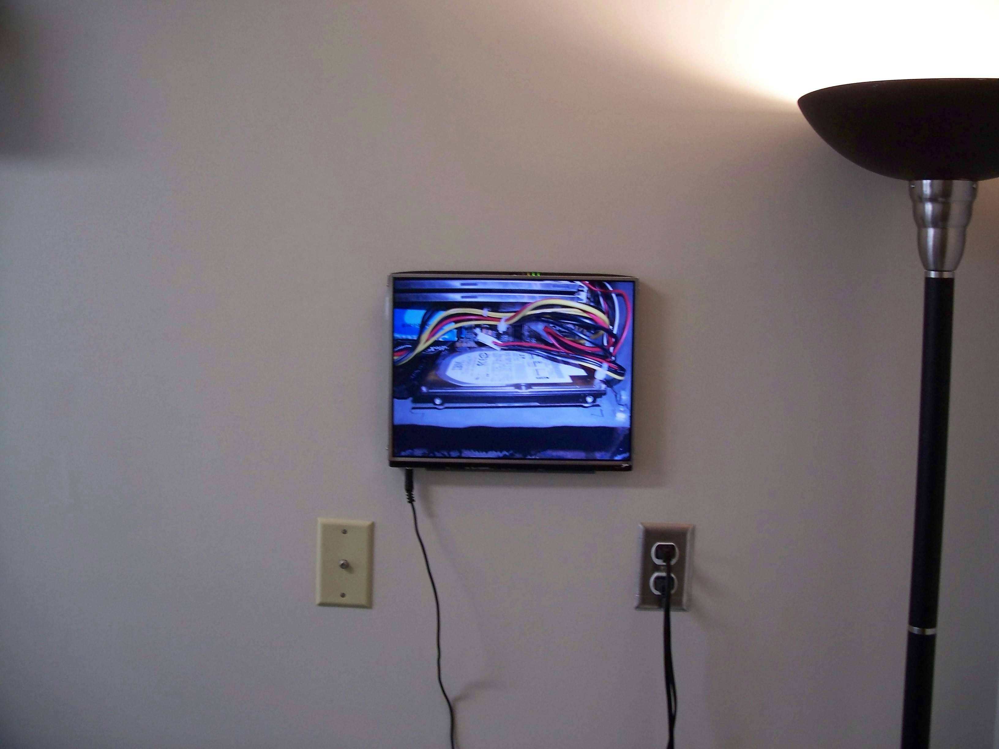 Here is the PC mounted on the wall, It may not look the prettiest, but it does do the trick, and it will look much better once the inverter is mounted.