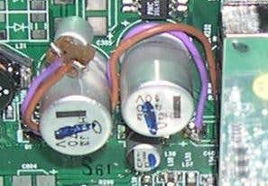 This image is of the fan controller circuit I used to power the coolers fan, the controller had a weird connector on it, so I simply soldered on the one I stole from the fx5900, and as you can see in the picture, the red and black wires on the other side of the PCB, the black one is soldered to an etched piece of the cards PCB (the ground) and the red wire goes through a hole in the card to the back of the card where I tapped into the cards 12v input. This is the relocated capacitor, I had to move it because it was sitting in such a way that it would not allow me to use the other mounting hole on the side of the gpu, so it had to be moved, i will probably secure it better later on, for now it works.