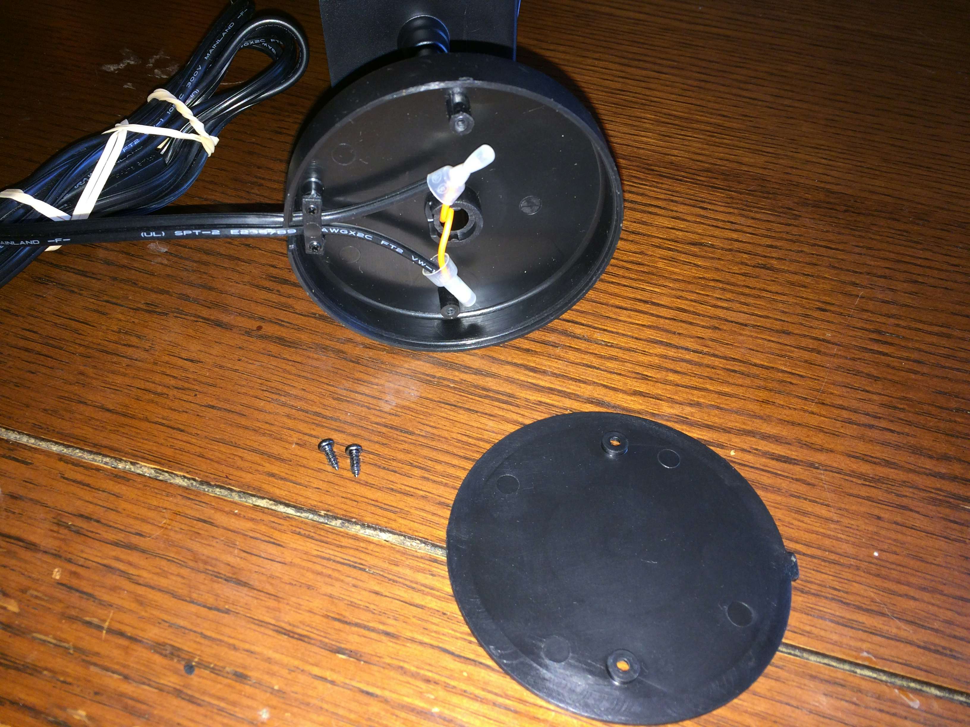 The back plate has a place where one could presumably mount the light on the wall but the base isn’t removable anyway. Holes like those will eventually be filled in to prevent light leakage.