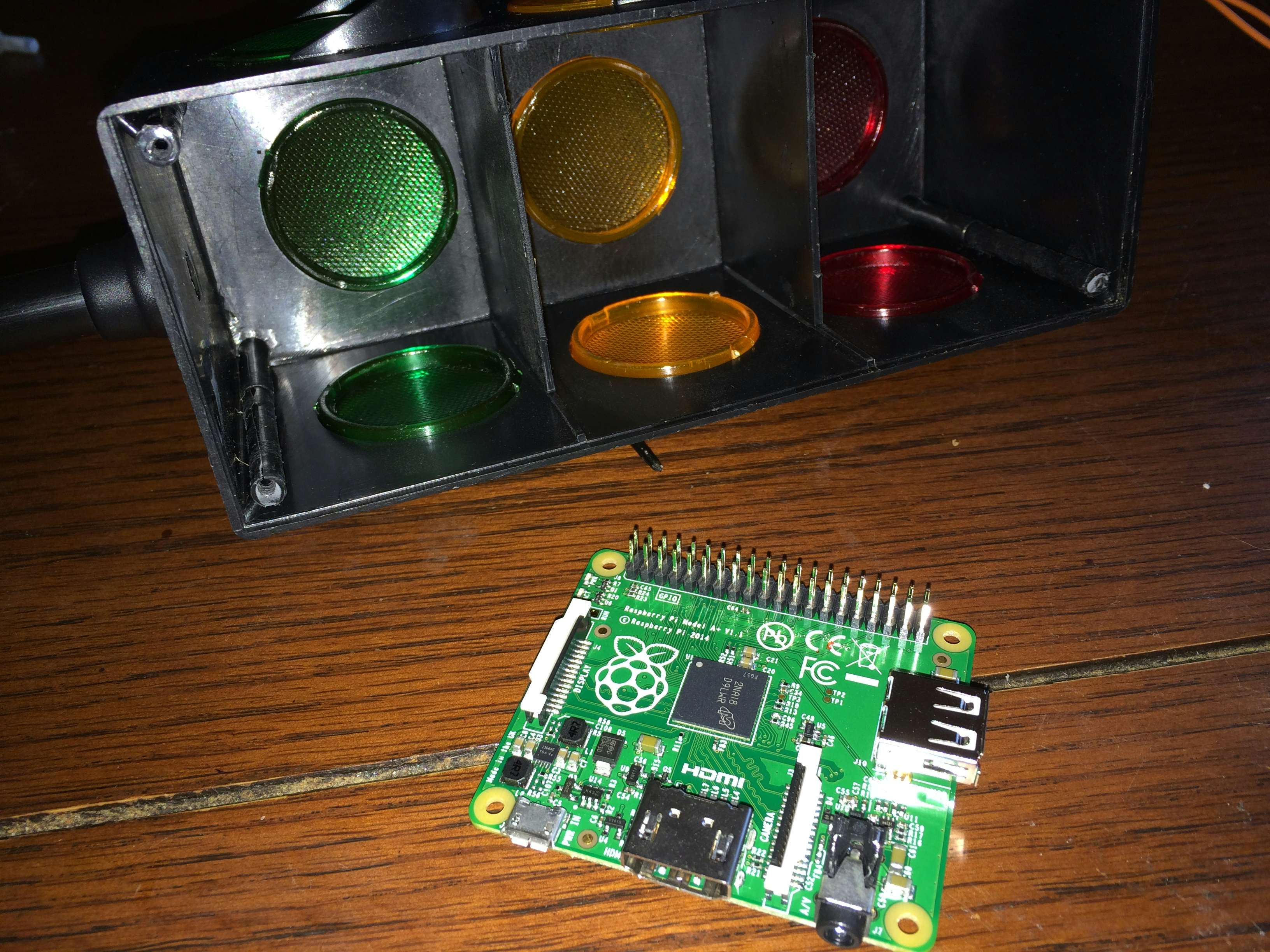 It just so happens the size of the Raspberry Pi Model A+ board fits inside the traffic light with just a few millimeters to spare.