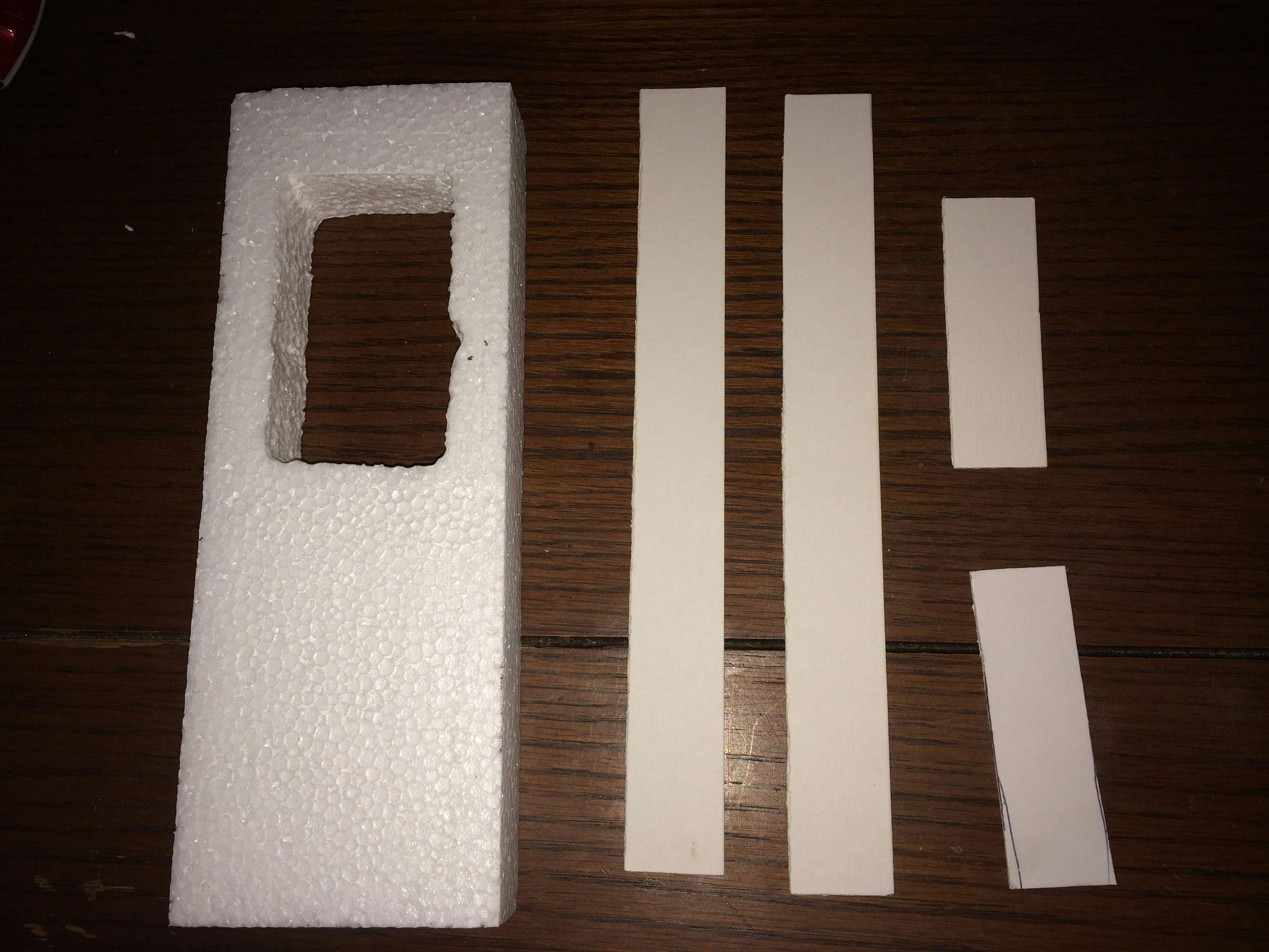 A piece was then cut that will fit inside the frame constructed above and is slightly smaller in length and width than the piece of styrofoam. With the piece cut and test fitted above I started to mark out the visible area for the individual digits that will make up the final defcon sign.