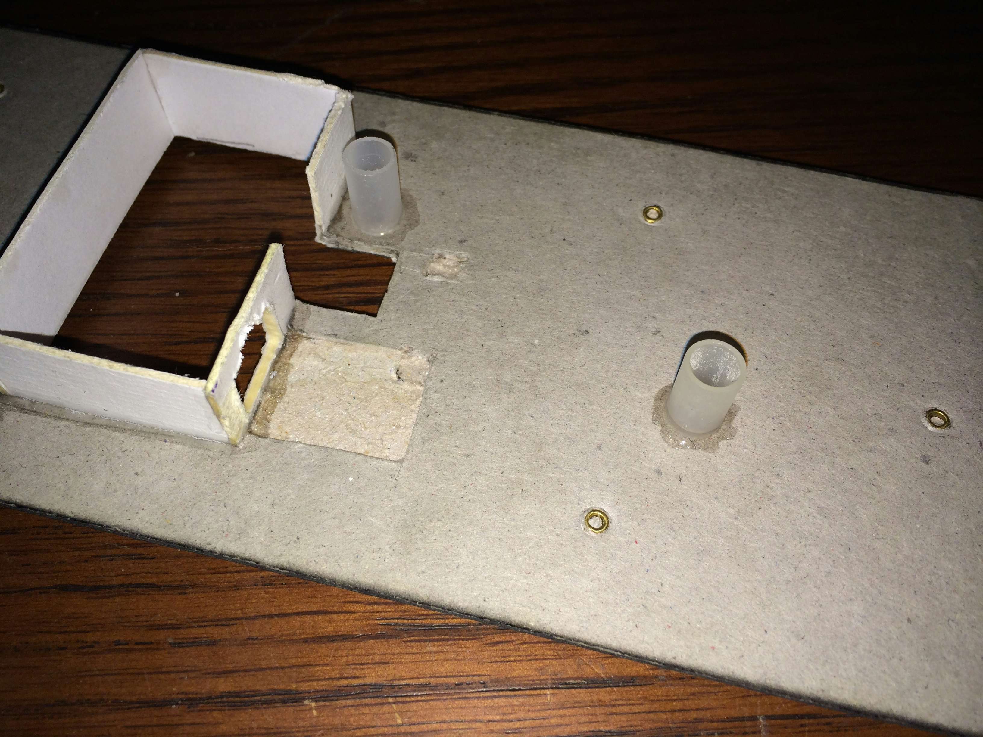 Projects are generally built one of two ways that differ in the way the internal components are attached to the body and to each other. I personally prefer to build a sort of inner skeleton or frame that the major components will attach to and is removable as a whole from the body. In this case I make use of thick poster board material to construct and attach the internal parts.
