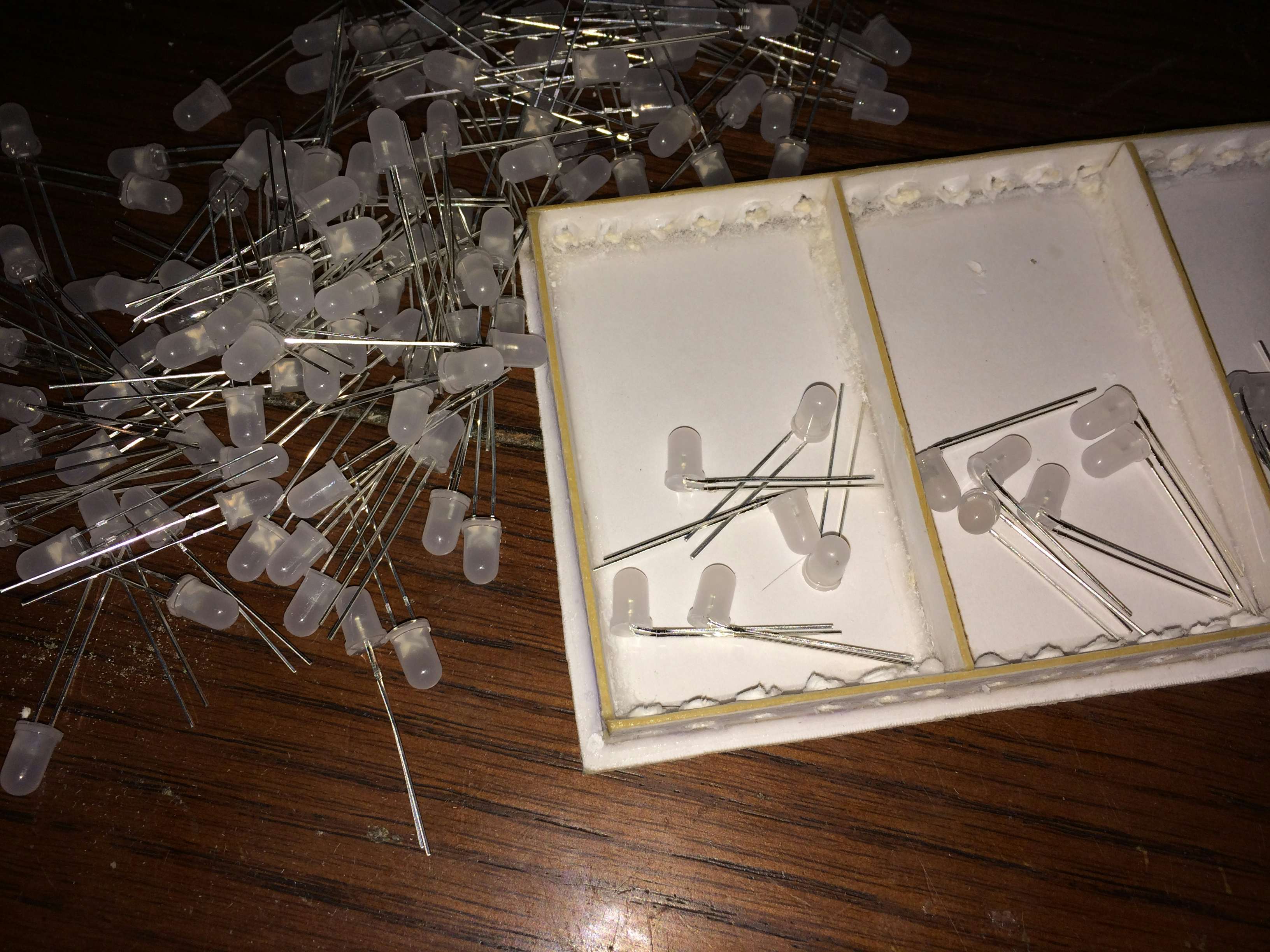 With the holes marked they were then drilled out using a bit that is slightly smaller than a normal LED so that once inserted the LED would stay in place with friction.