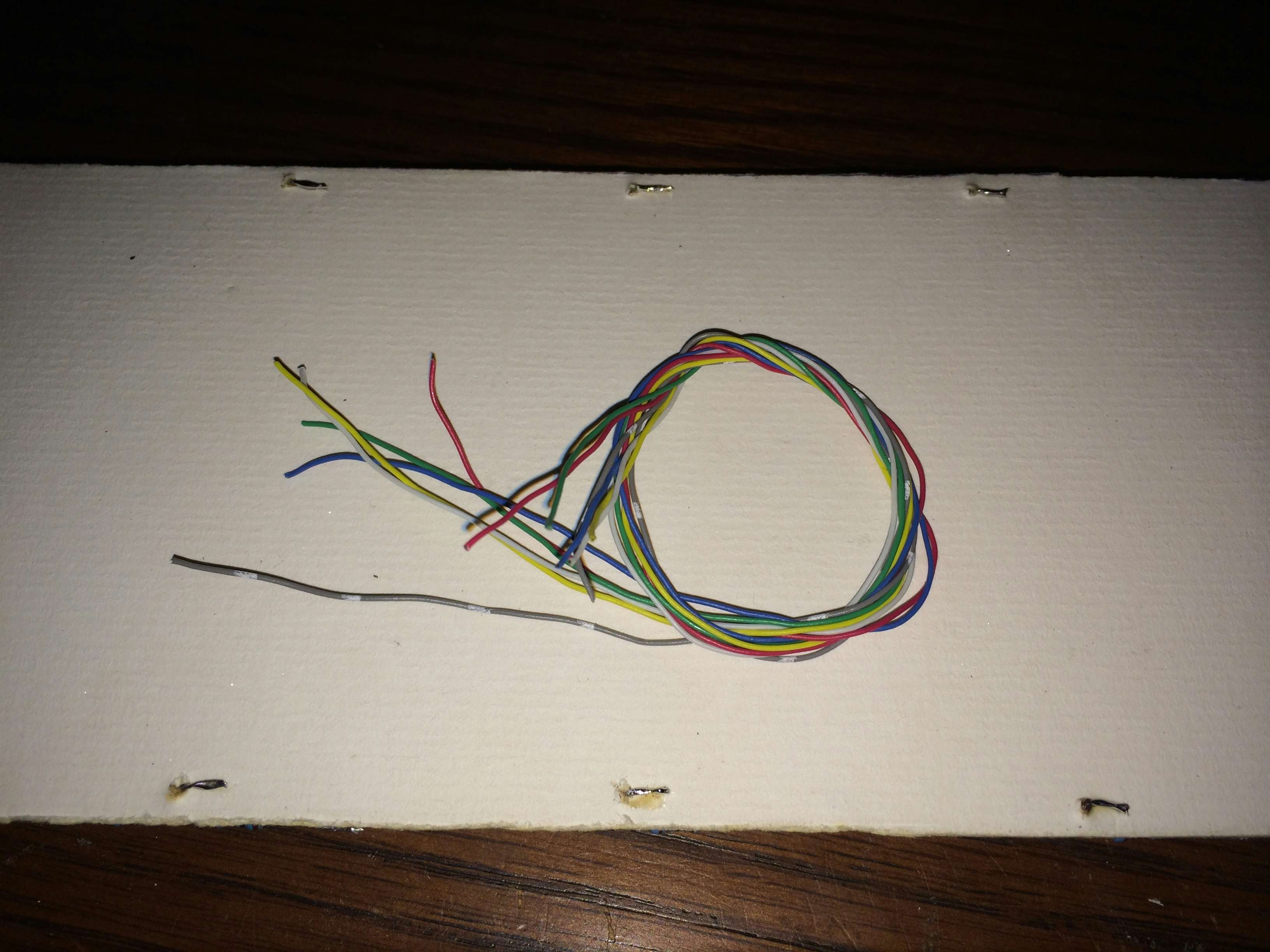 The resistors are then soldered on the rear side of the LED Display and wires attached that correspond to the color of the respective digit. The wire itself is salvaged from some old parallel cable that contained 25 wires for each of the pins of a parallel port, this wire is great as it is small, easily soldered, and comes in a wide variety of colors.