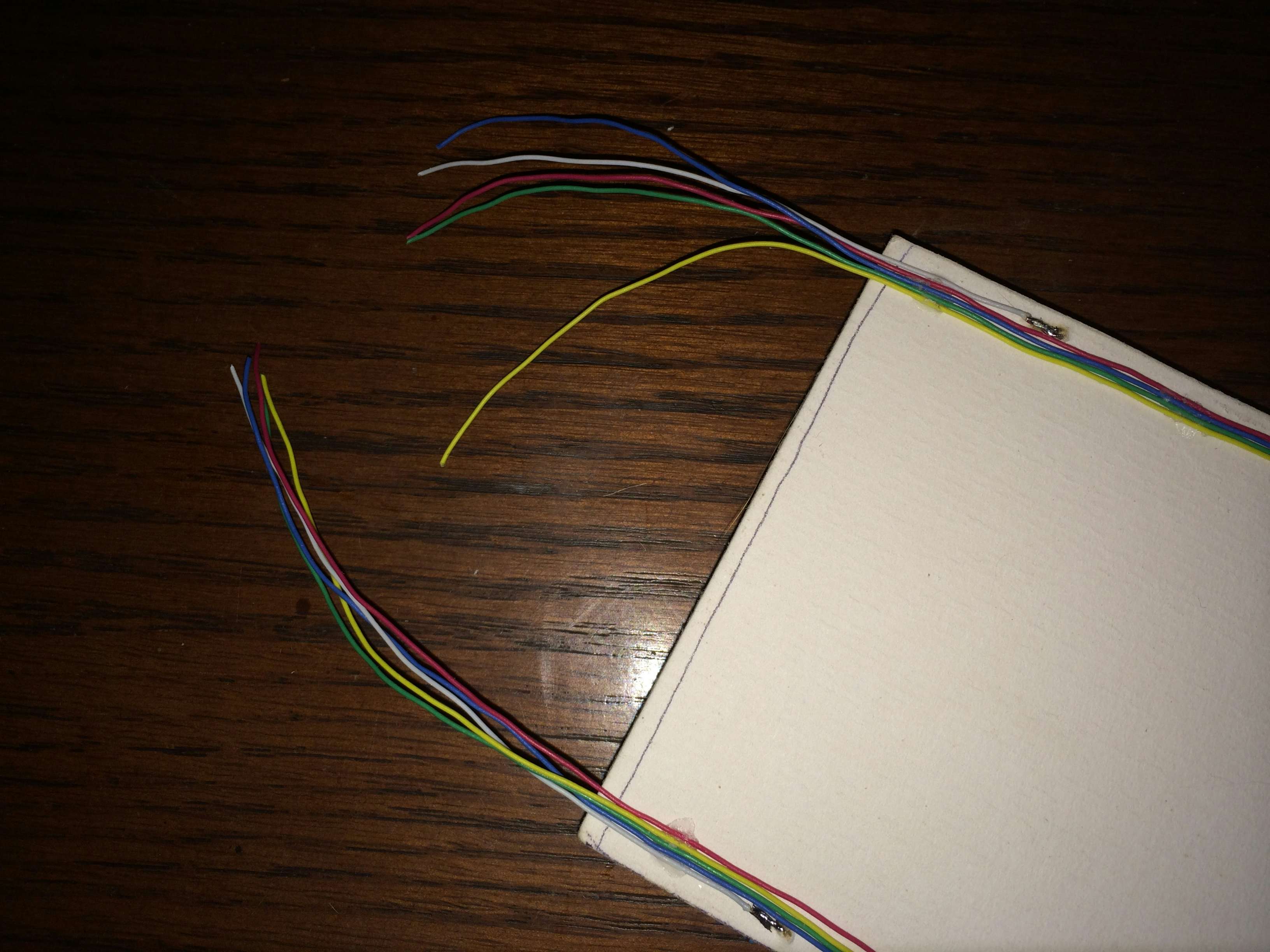 Lastly a small hole was cut in the I/O area to allow access to the DC barrel jack on the Transistor Board. With the last cut made in the I/O area a small piece of poster board was glued to seal up the outside from the inside of the project. The small gray cable provides the connection between the Raspberry Pi and the Transistor Board and supplies power to the Raspberry Pi while returning its GPIO signals back to the Transistor Board.