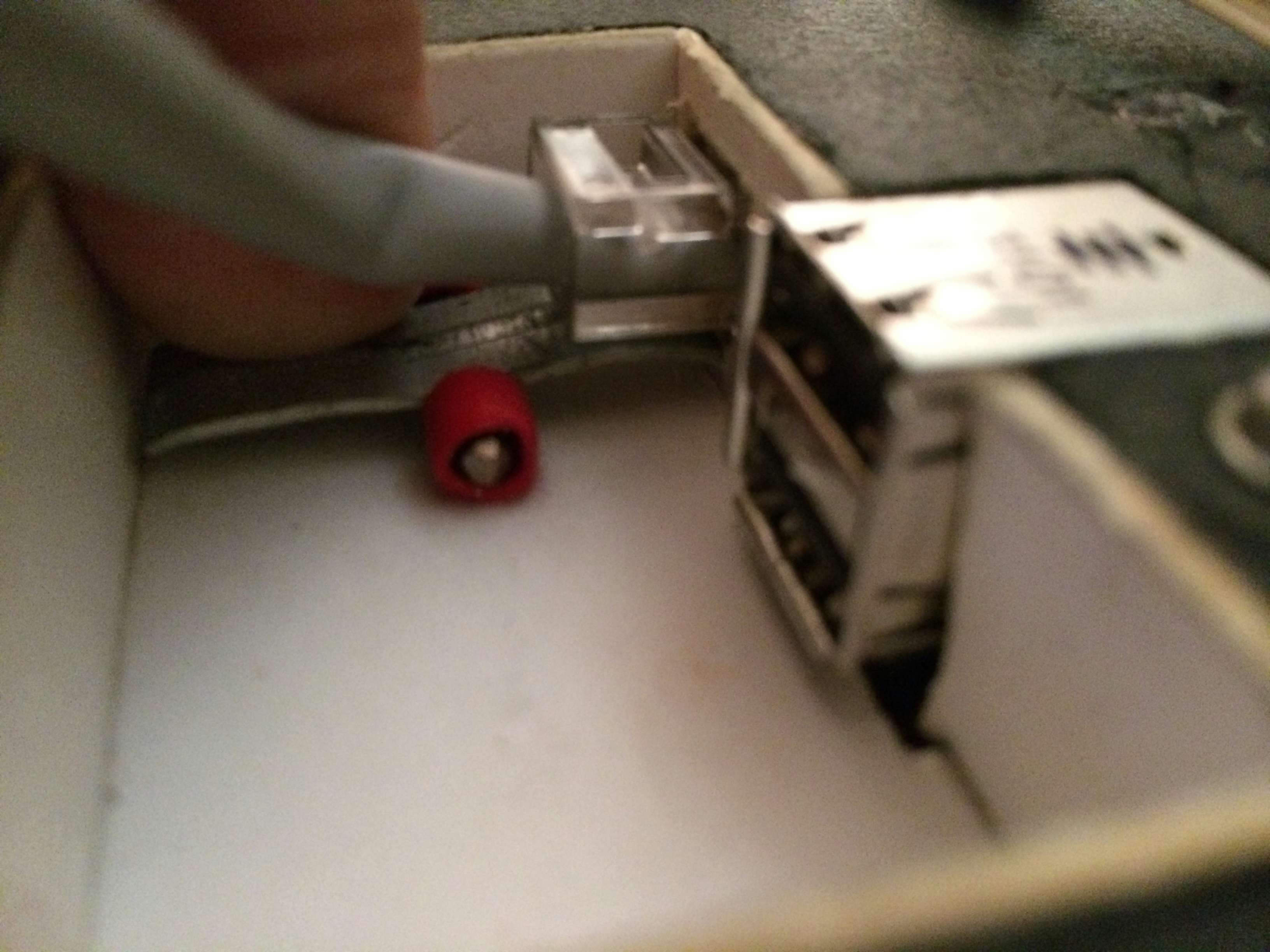 A moment of truth as an ethernet cable was connected, it might be hard to make out in the image but no pressure is placed on the clip of the ethernet cable’s connector until the lever is depressed. The lever fully pushes the clip of the cable flat against its connector providing an effortless removal of the cable. In all honesty it is as easy or perhaps easier to remove an ethernet cable now with a much larger lever that can be used to release the cable versus that tiny and somewhat fiddly clip.