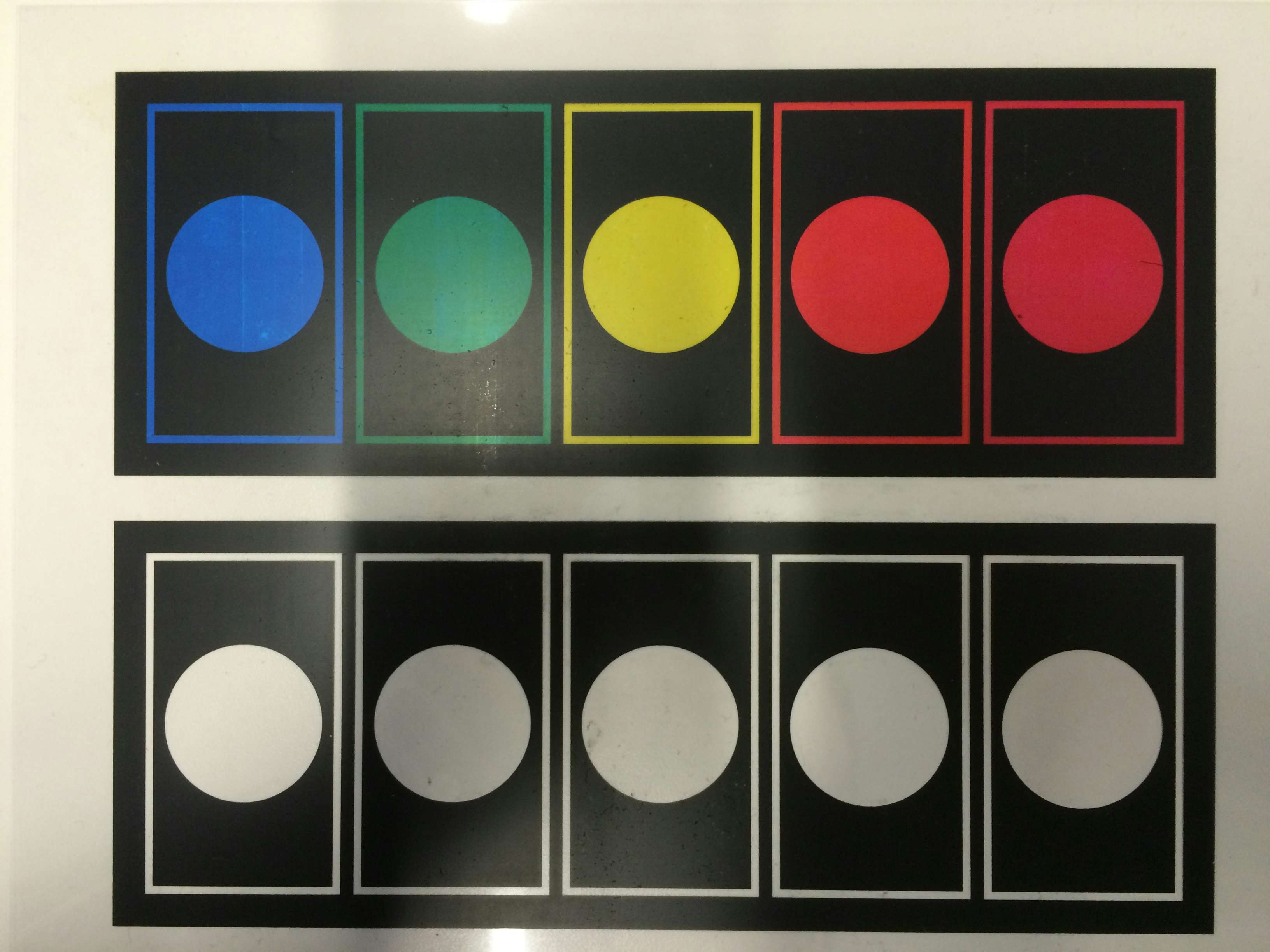Using a printed sample of the final numbering overlay the LED digits were tested for dimensions, positioning, and light leakage between the numbers. The final overlay will be printed on transparency paper however, here I am using a low quality laser print of the overlay. The digits light up nearly as perfectly as if a much larger grid of LEDs had been used and diffuses quite well from top to bottom. The second picture is a better representation of how the colors look in real life.