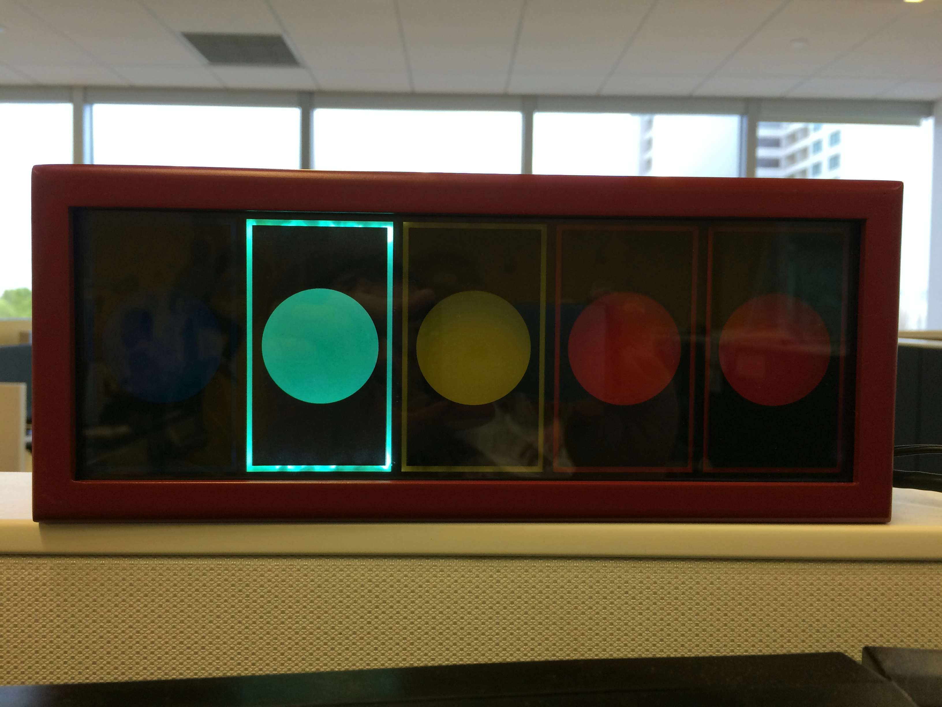 At the time of writing, my current employer Zimmerman Advertising has a meeting room where the various team leads for a given project can meet to work collaboratively and hash out important details. We call this room the War Room. As one might expect in the War Room things can get heated as debates happen over functionalities, implementations, and user experiences. I realized it would be handy to have a visual indicator of the threat level readiness of conditions in the War Room.