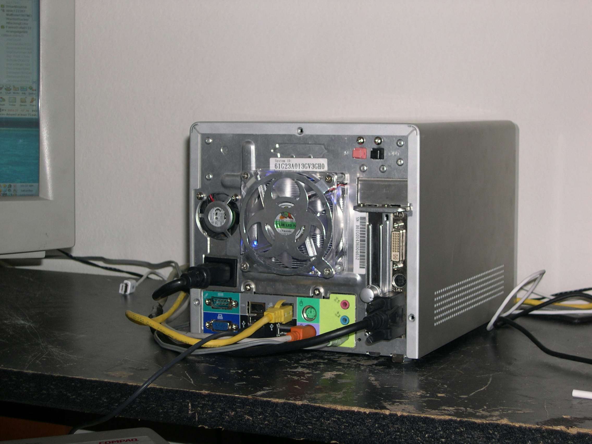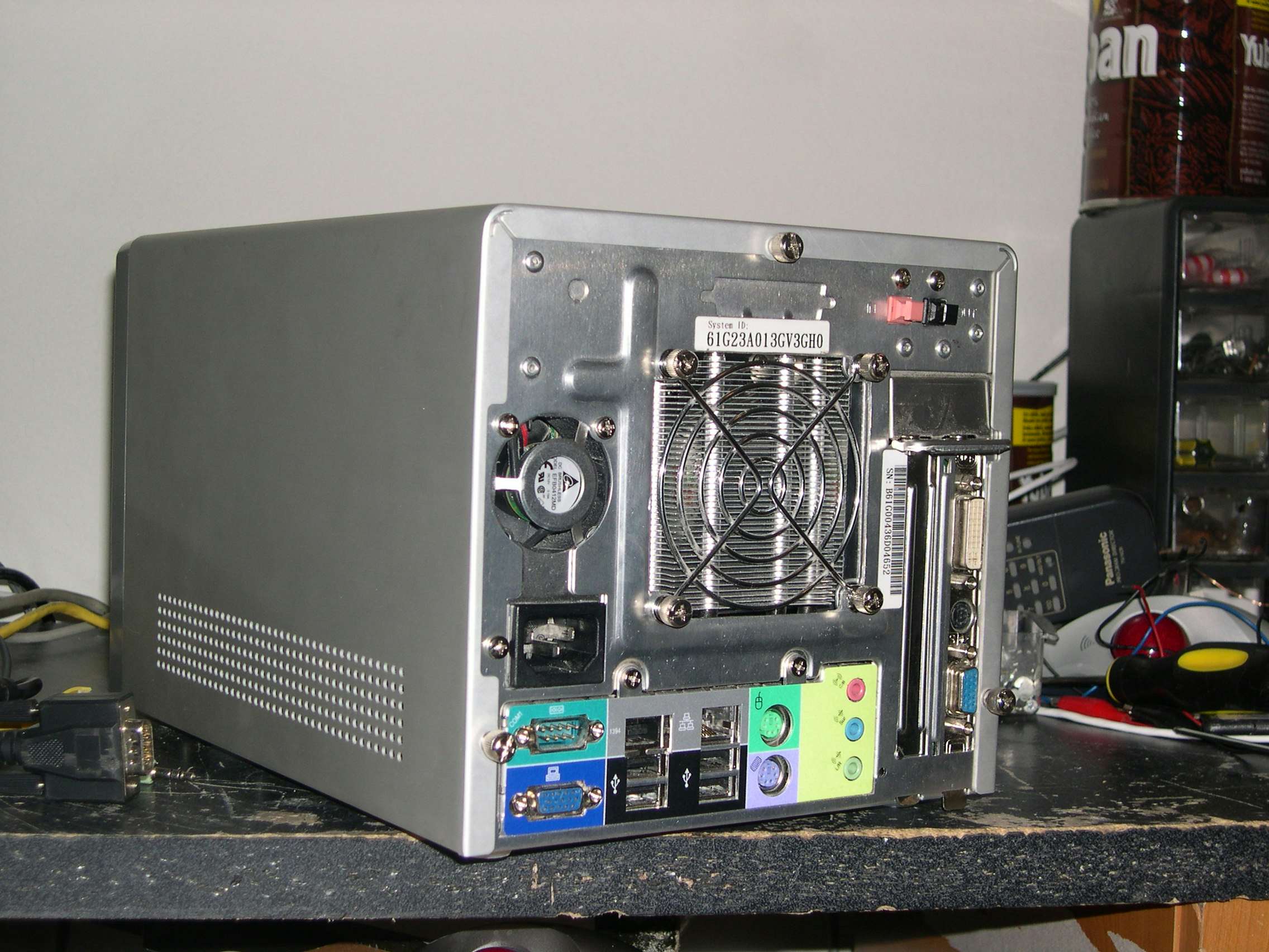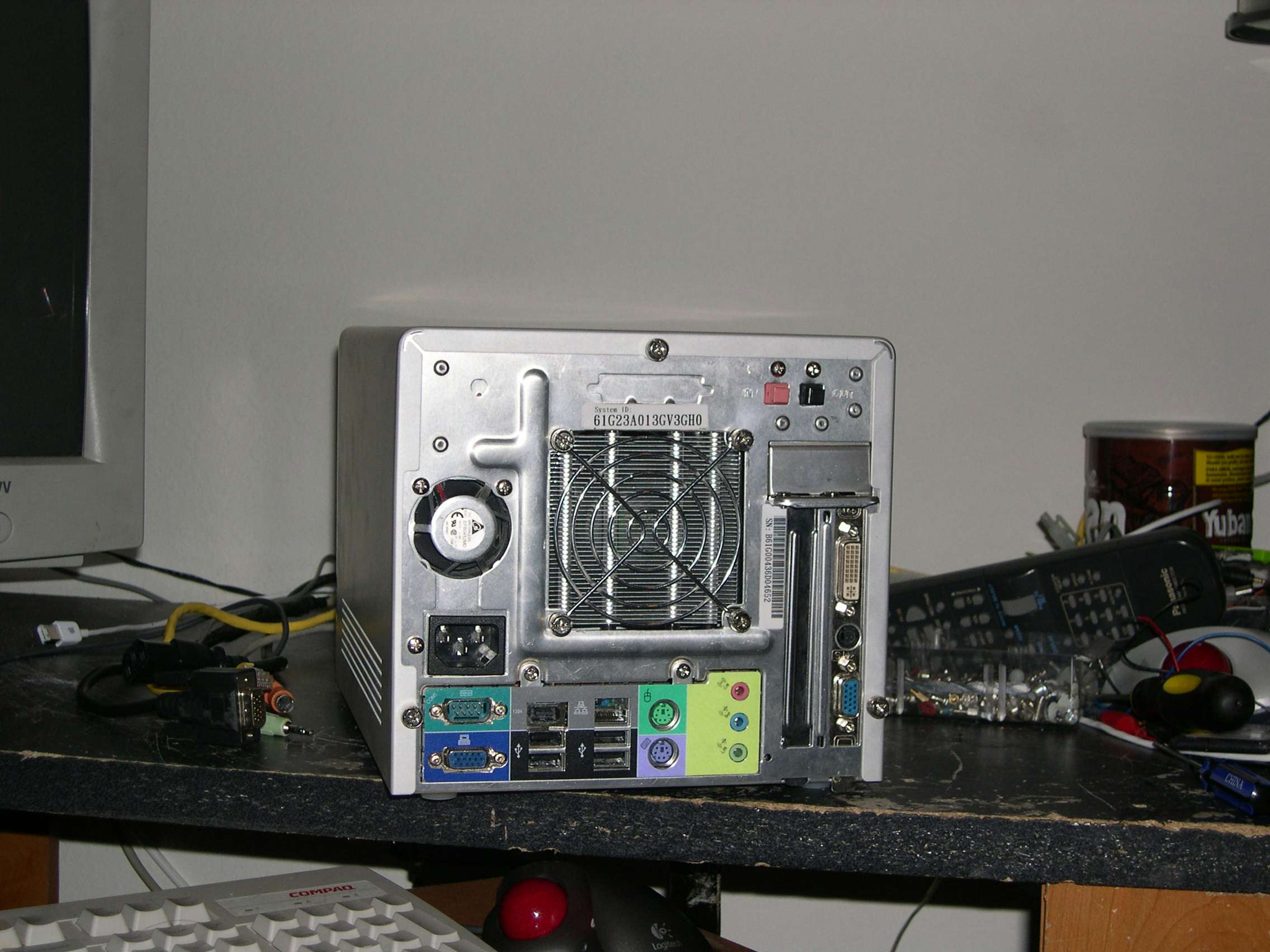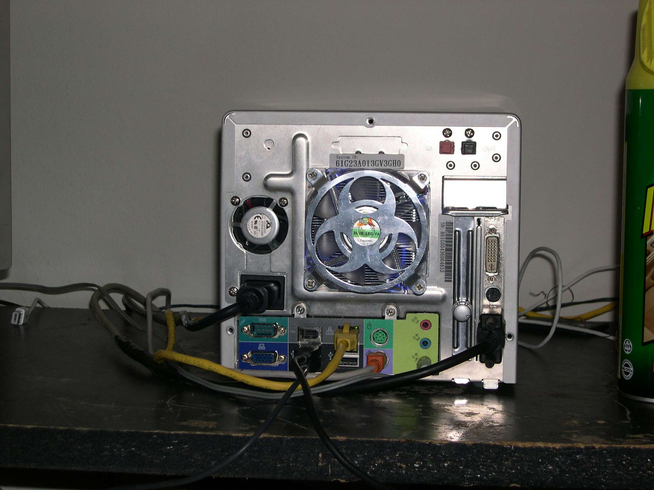 I have a really hot processor, the Intel Pentium 4 3.0E prescott, this particular chip should not be used without some additional cooling options in the shuttle, from first glance I can see that the stock shuttle fan grill on the back not only restricts air flow, but it also creates a lot of noise, not cool, so i decided I would just simply cut away the old one, and attach a classic 80mm fan grill.