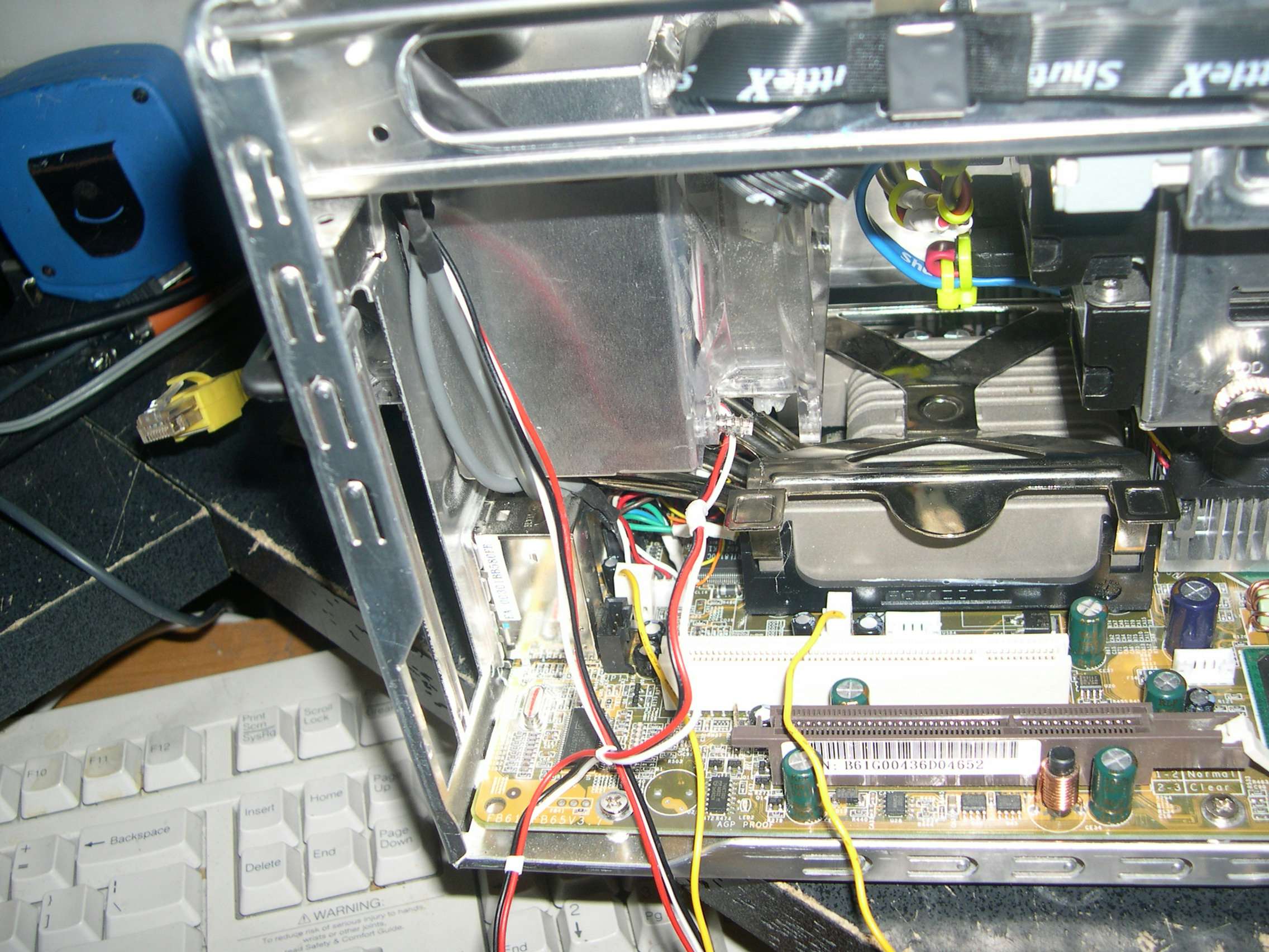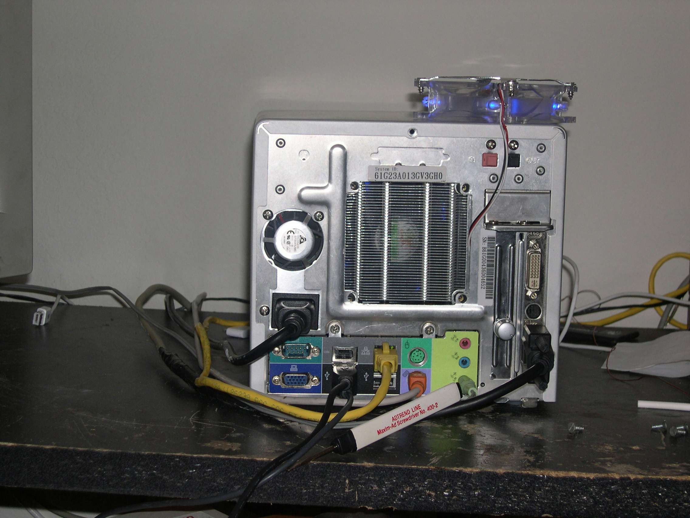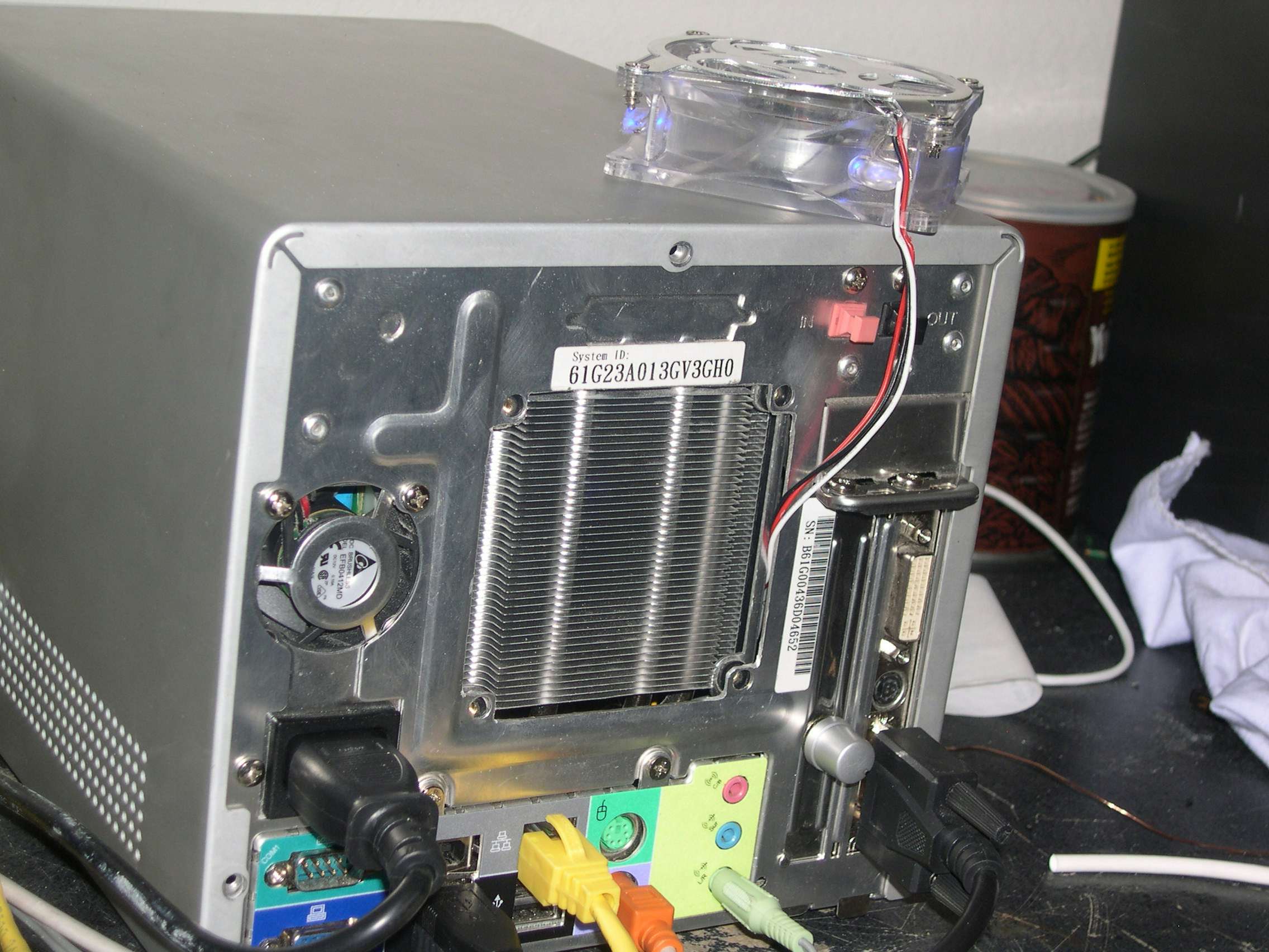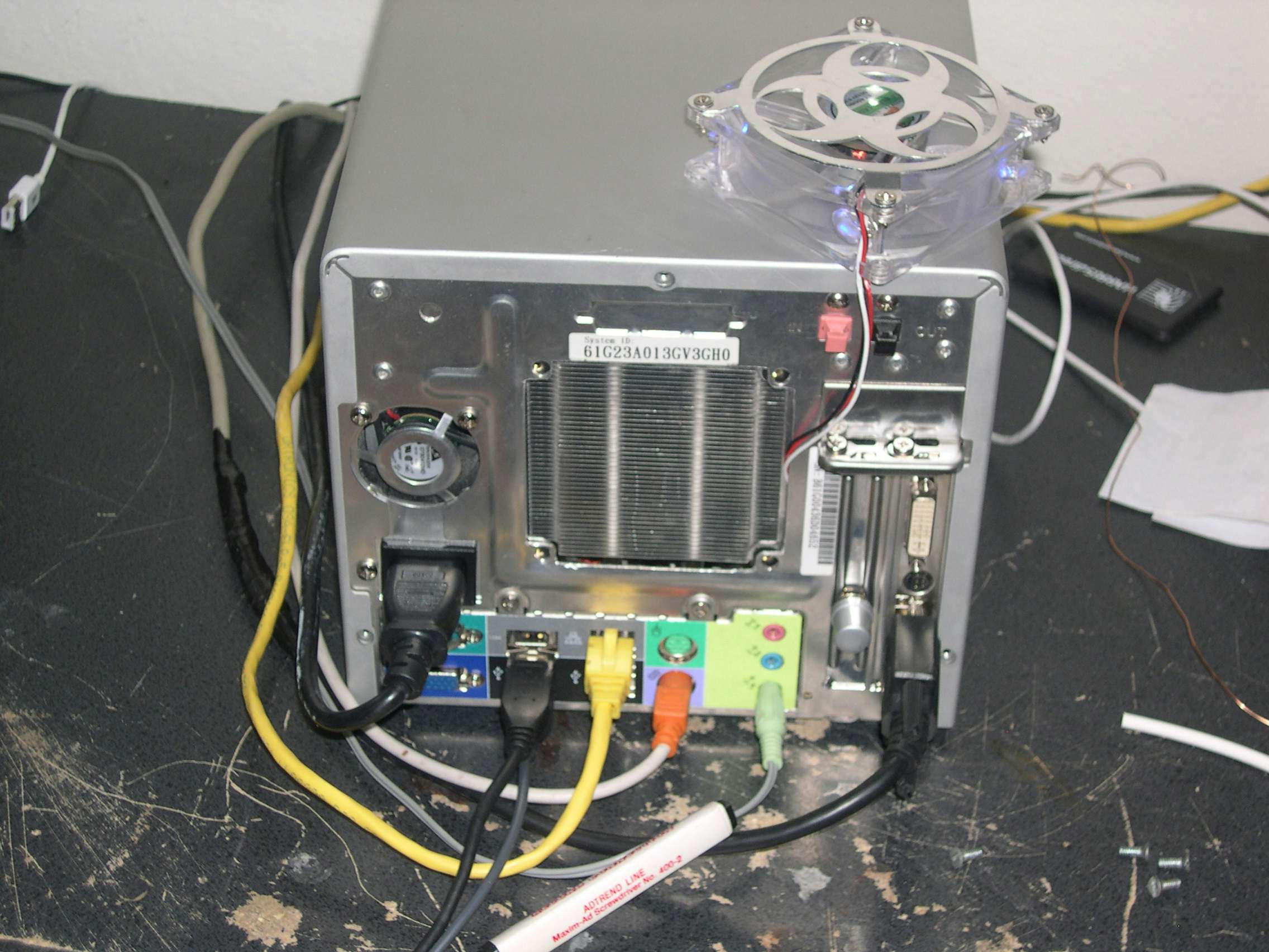 I decided that since the shuttle xpc’s ice cooling system has a hole down at the bottom where the ice pipes enter the fin unit, that leaves for a lot of air to escape out of there, and back into the shuttle, leaving the same warm air to travel back into the cooling system, and then get blown back over the ice unit. So what I needed to do was create negative air flow for the cooler, I did this by placing the exact same fan I used on the inside for the outside, since I had already ditched the noisy shuttle stock fan, this was easier than some would think.