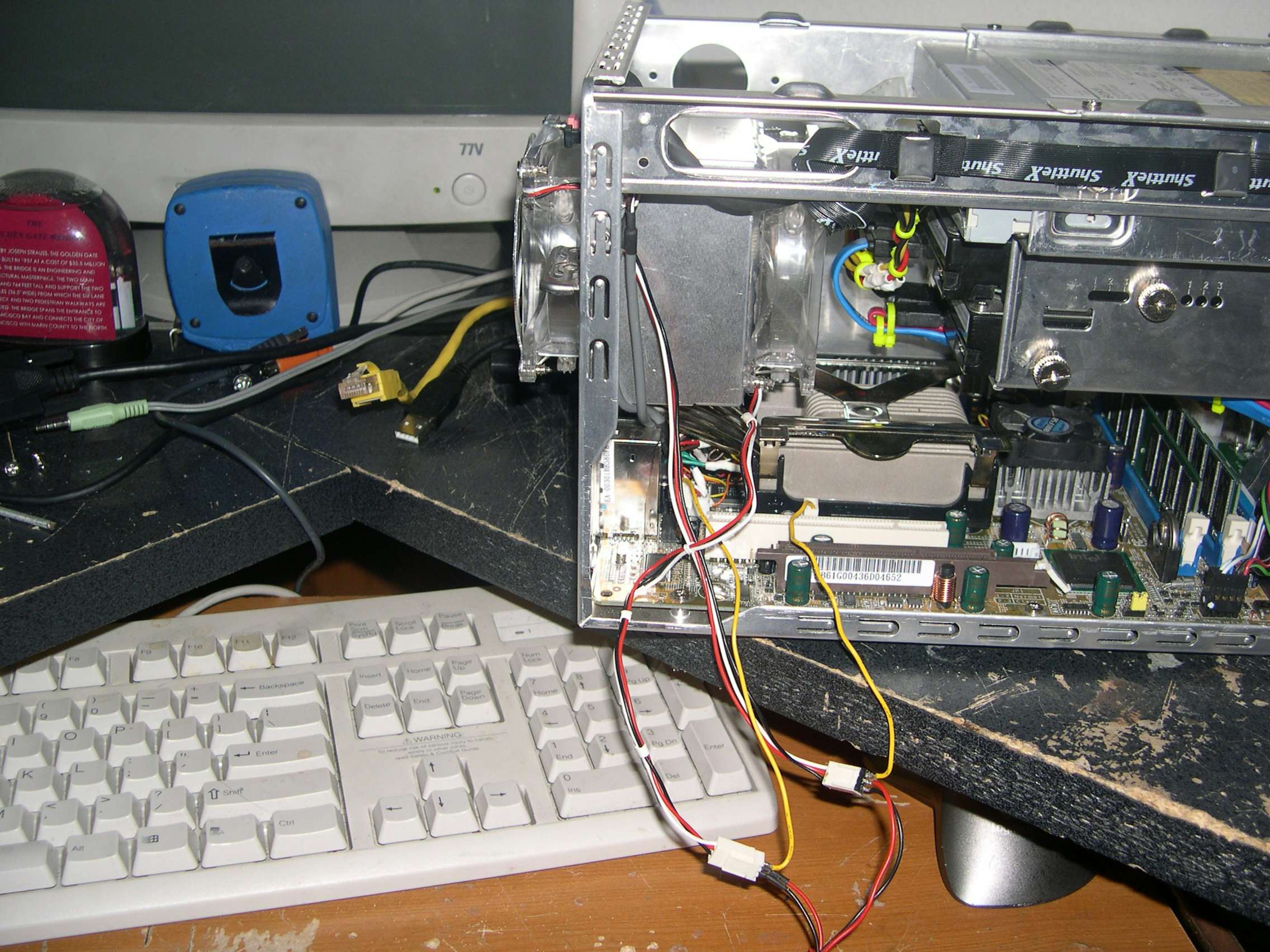 The fan controller is actually quite simple, its as if you were to hook up a bunch of fans to a 12v inline connector, except you put a pot (potentiometer) in the circuit, the interesting thing about this is like a lot of mods, it cost me nothing but time, and it allows control of 4 fans at the same time, and for the 2 processor fans it allows me to still hook up the sensor wire so that I can monitor speeds, from motherboard monitor, as well as temperatures and whatnot.