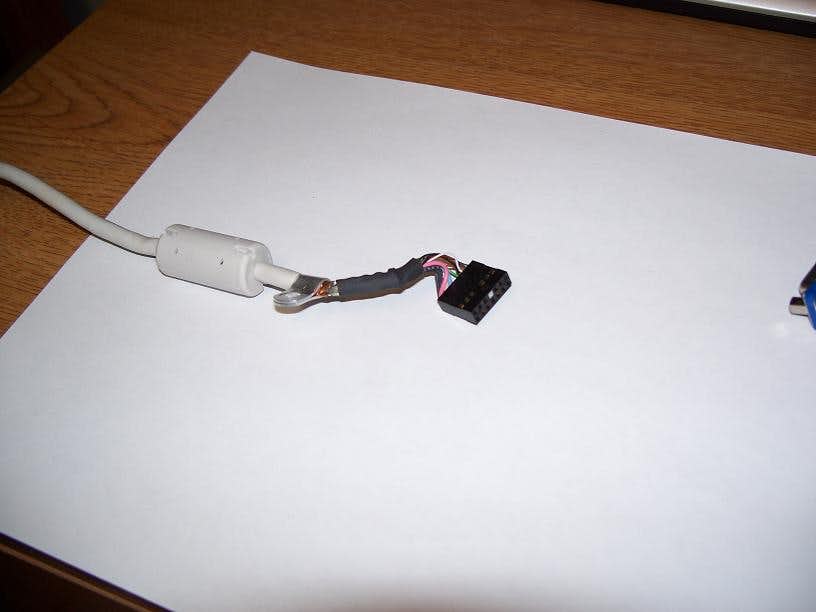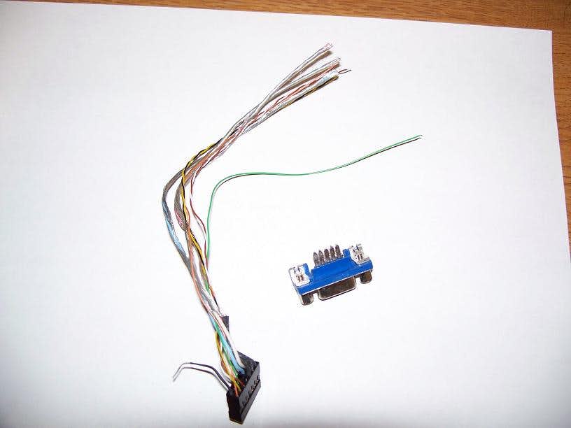 The connector and some wire cut off of the original VGA cable, Liberated from the white housing it was in.