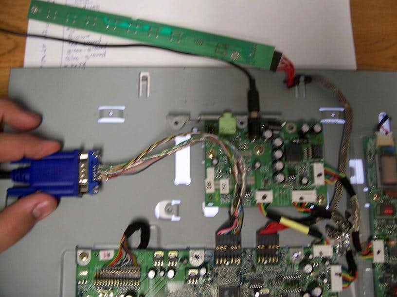 This is the back of the panel exposed showing where the VGA cable mates with the controller board, which happens to be removable.