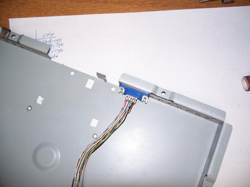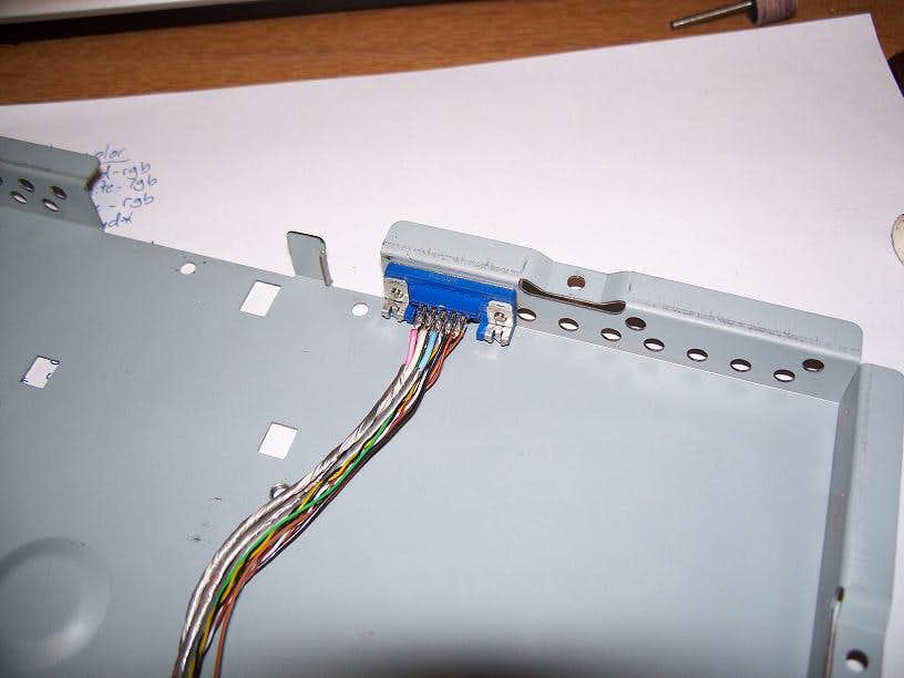 The aim of this mod is to add such a jack on the back to allow me to connect any vga cord I have. The reason I even decided to do this was because the splice I had done years ago had started to fail with wavy lines and sometimes red or blue not displaying properly.