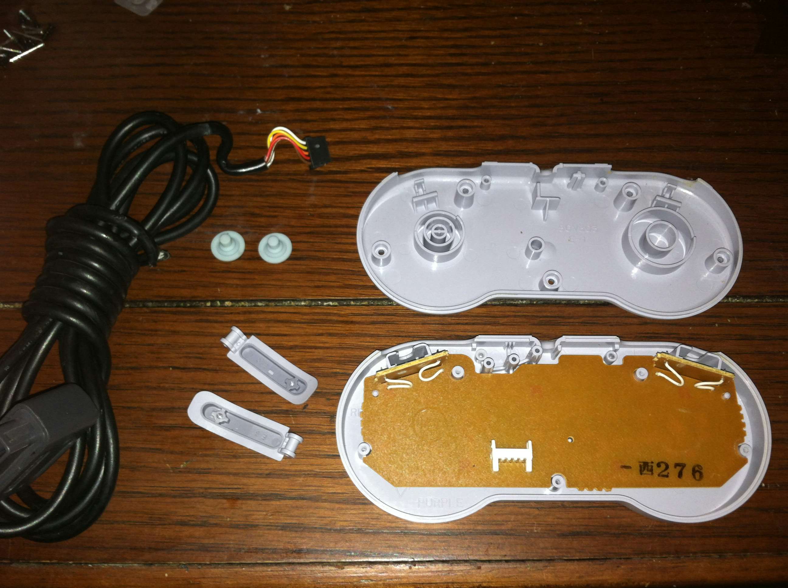 The first step was to dismantle the SNES controller and see what type of modifications will be necessary to fit the keyboard control board inside. Nintendo build everything with an extreme amount of detail and high quality plastics that still feel great to the touch and function properly nearly 23 years later.
