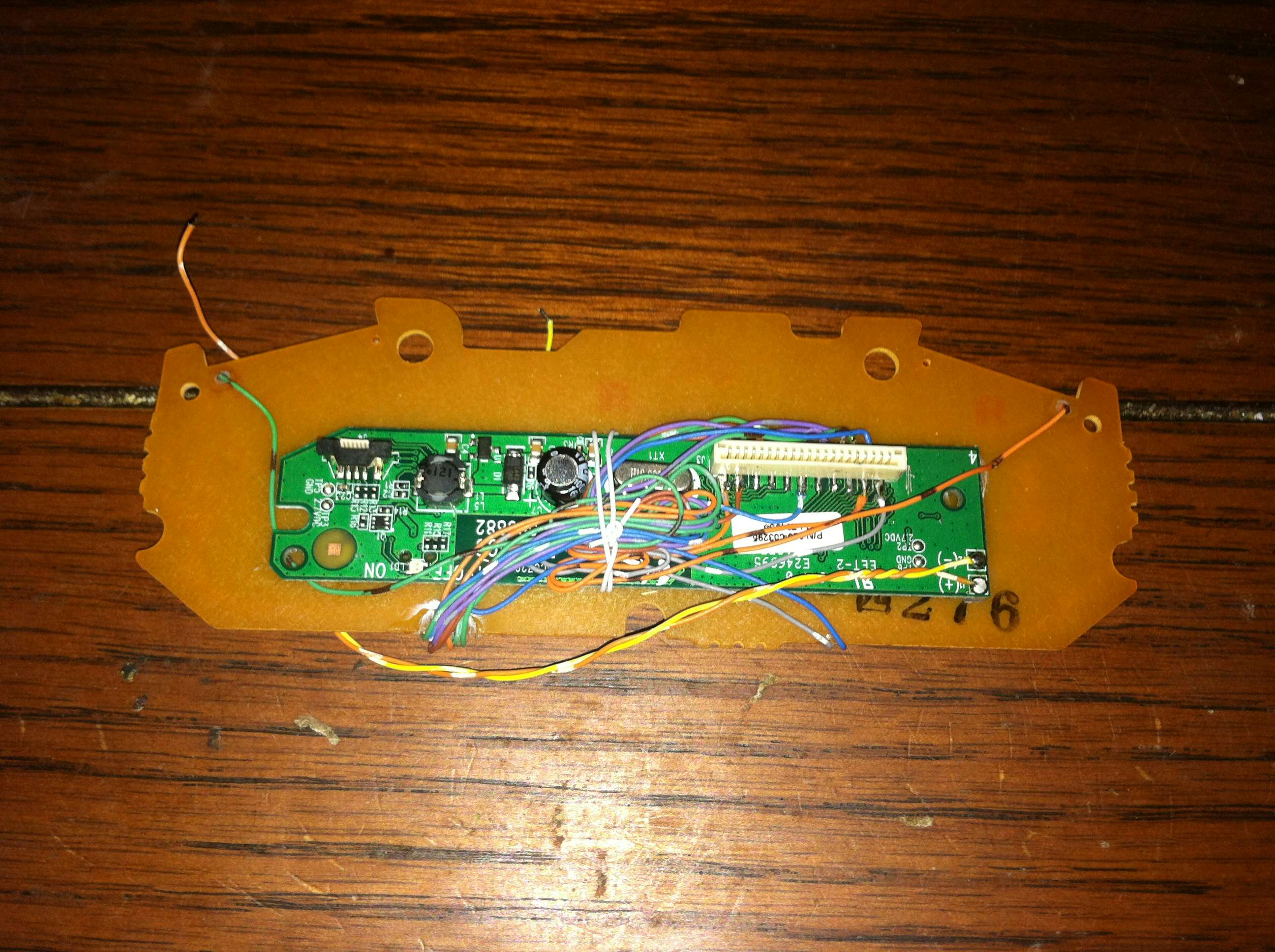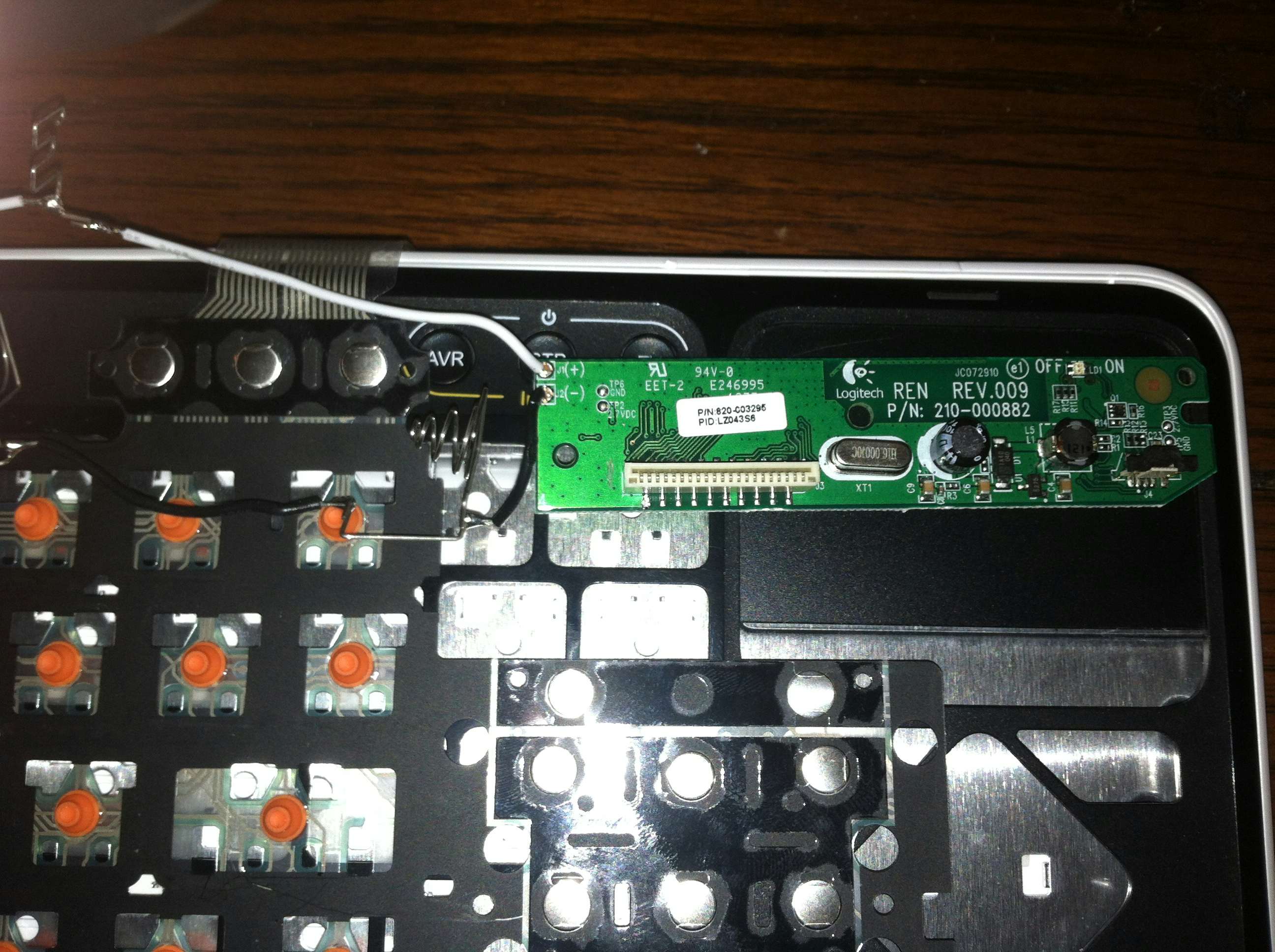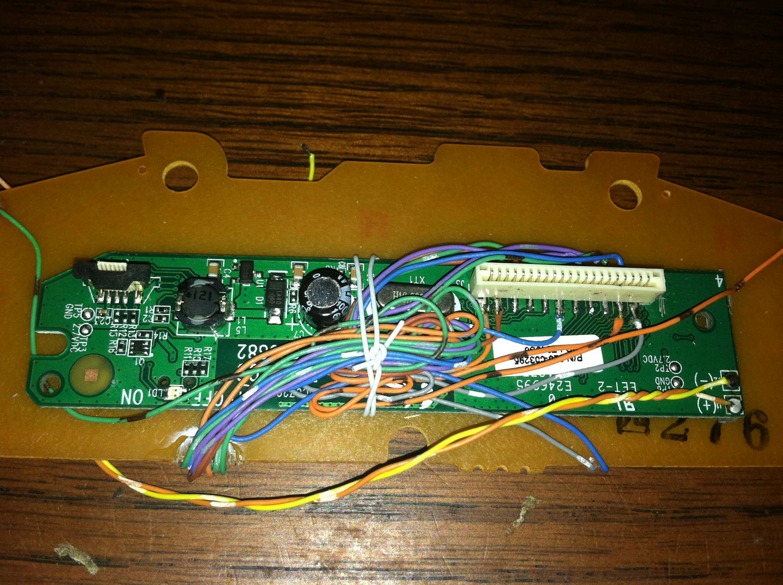 It was at this point I realized that the membrane was too complicated to map by simply following the traces. Once I had the control board disconnected I started by soldering a wire to the first pin on the connector and with notepad and/or a key mapping utility I mapped out which keys I could use to the pin combo on the control board. Wanting to stay within the “normal” keyboard keys such as A-Z, 0-9, and basic symbols such as ,[]’; etc meant it would take some effort to find unique pin combos that will work.