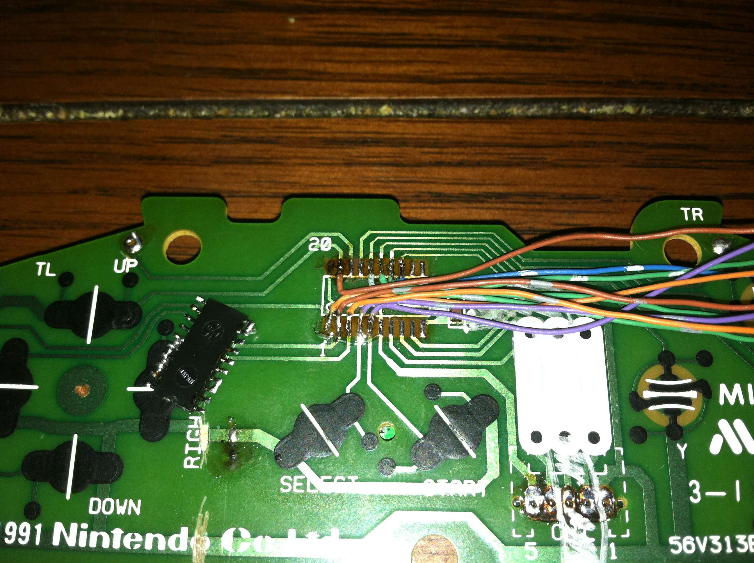It seemed easiest to attach the keyboard control board to the back of the SNES gamepad board. In this way both boards can be removed as a single unit including the wires and eliminate the need to create a modular connector between the two. When designing a DIY project like this it is important to consider the amount of times you are likely to take the project apart to make further enhancements or modifications and ensure that wires aren’t breaking loose etc..