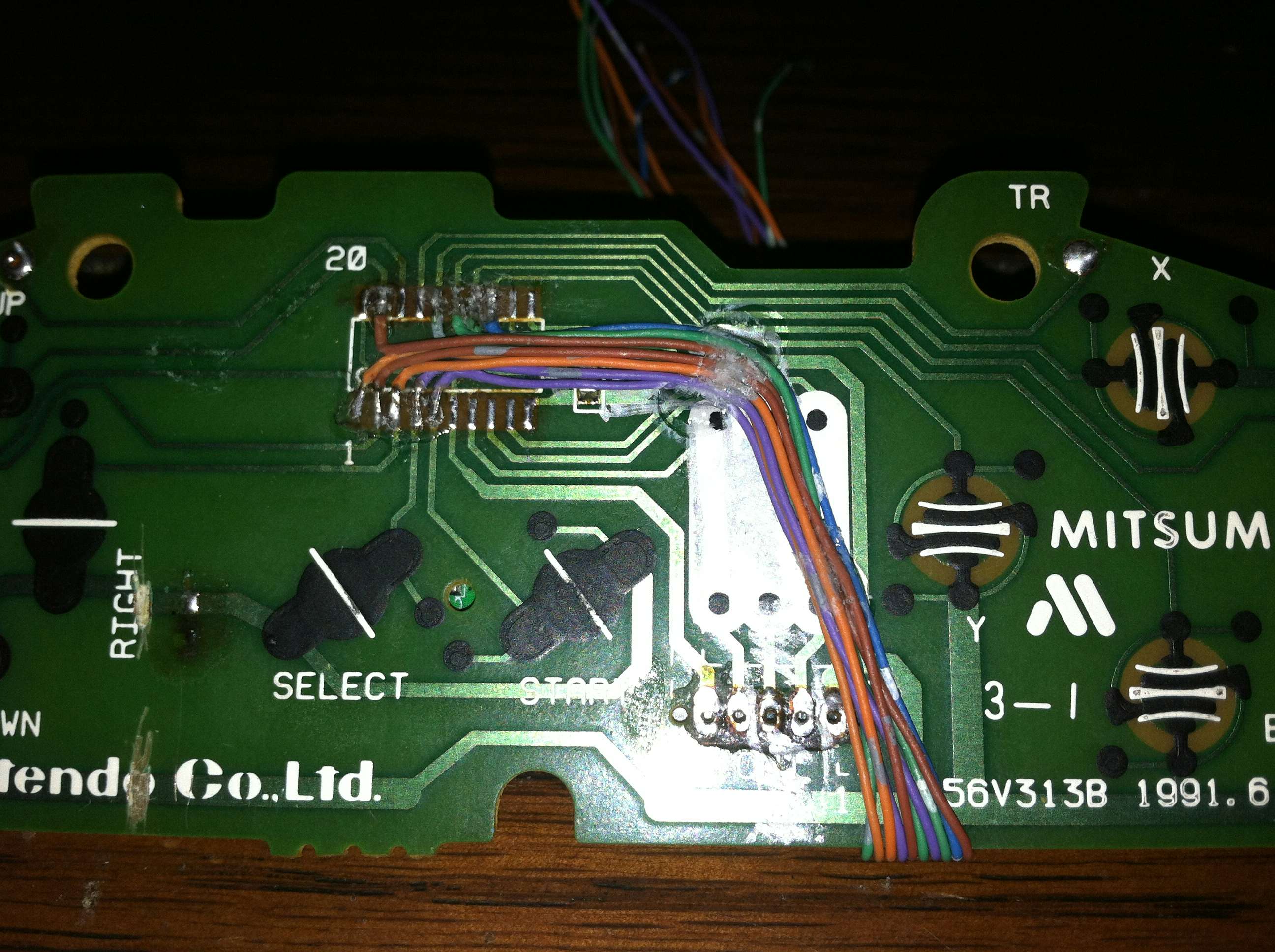 With our mappings and other details figured out for the moment we can start to attach the control board and interface the keyboard membrane connector with the 12 total buttons of the SNES controller.