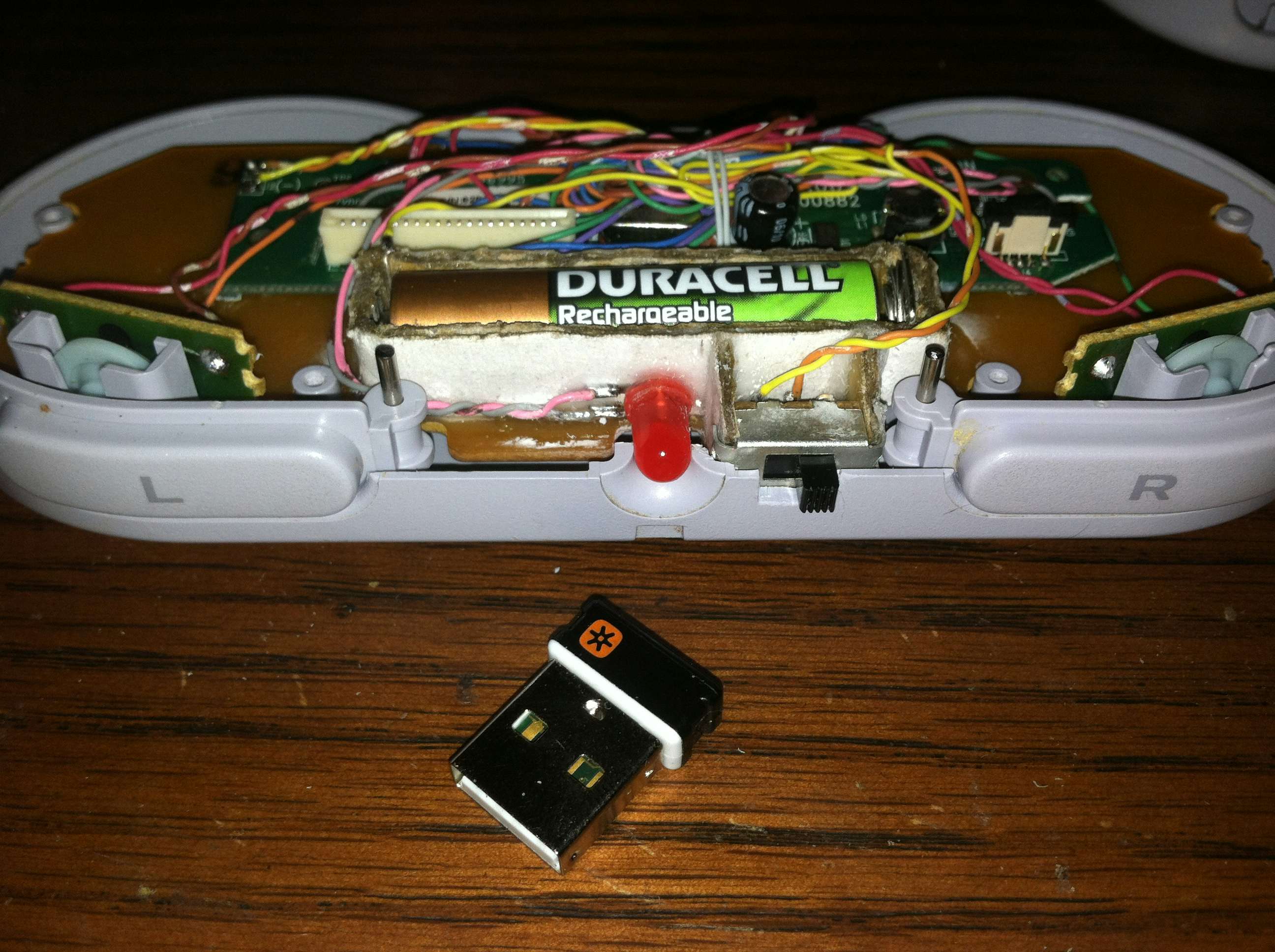 Instead of re-inventing the wireless wheel I started with a proven wireless keyboard and mouse technology. Using a single Logitech Unifying Nano Receiver it is possible to connect up to 6 devices using a single receiver. Once paired the device never needs to be synced again unless you wish to associate with a new receiver.