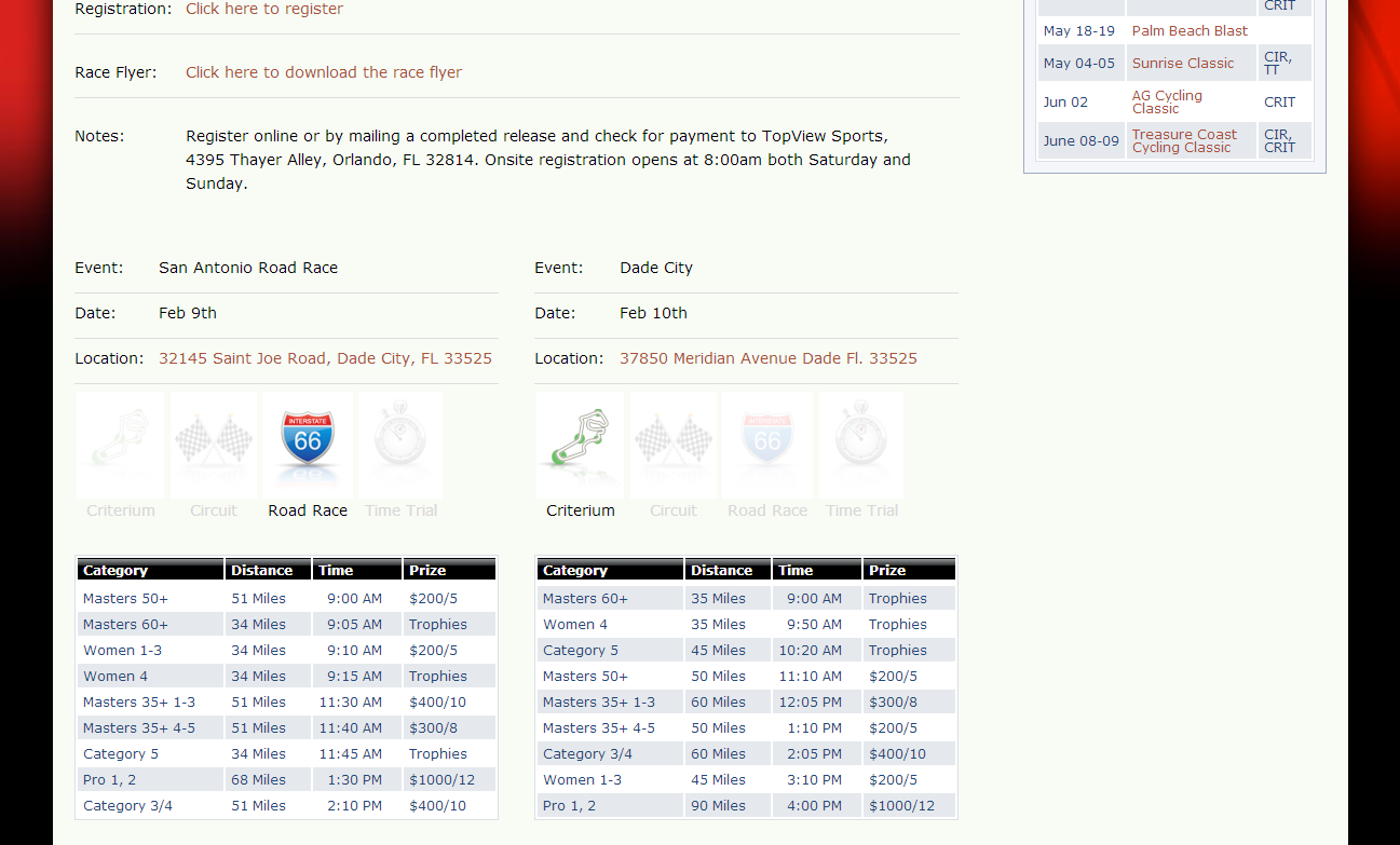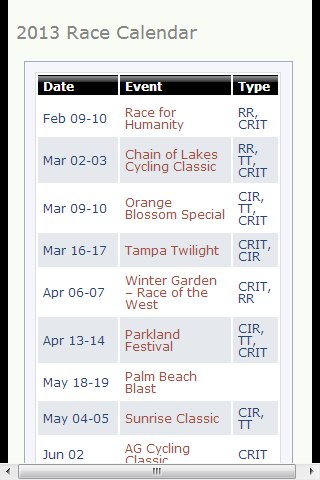 Logically in WordPress you have pages and posts and generally a given page is a combination of other sub pages and posts that exist. In this WordPress we have setup a custom post type for events (races) that show up in a list on the Races page and includes the details such as the location and schedule when viewing the post directly.