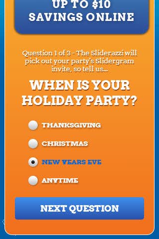 Slidergram provides a fun way for users to create personalized greeting cards that can be sent to their friends and family using email, Facebook Share, and also Facebook Message functionality. The sender has the option to ask the recipient to RSVP to the card at which point the sender will be notified of the recipients response.