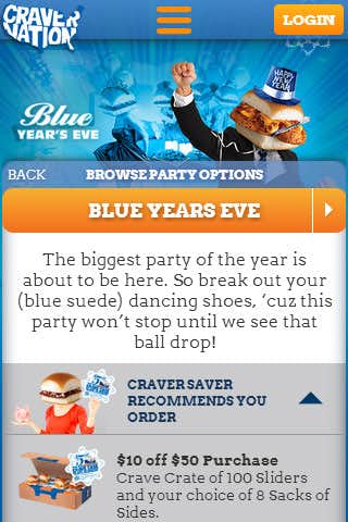 Users entering the site are greeted with a call to action from none other than Uncle Crave himself. When logging in to the site we use a simple dropdown that includes the option to create an account on CraverNation or log-in using a number of social options.