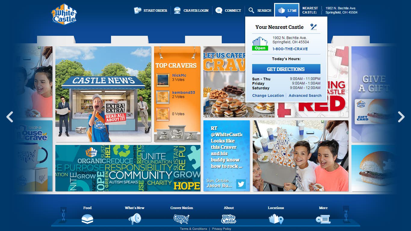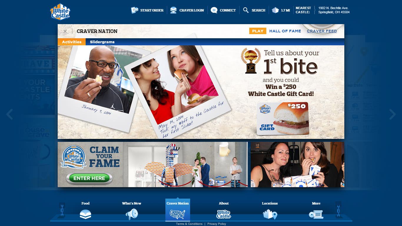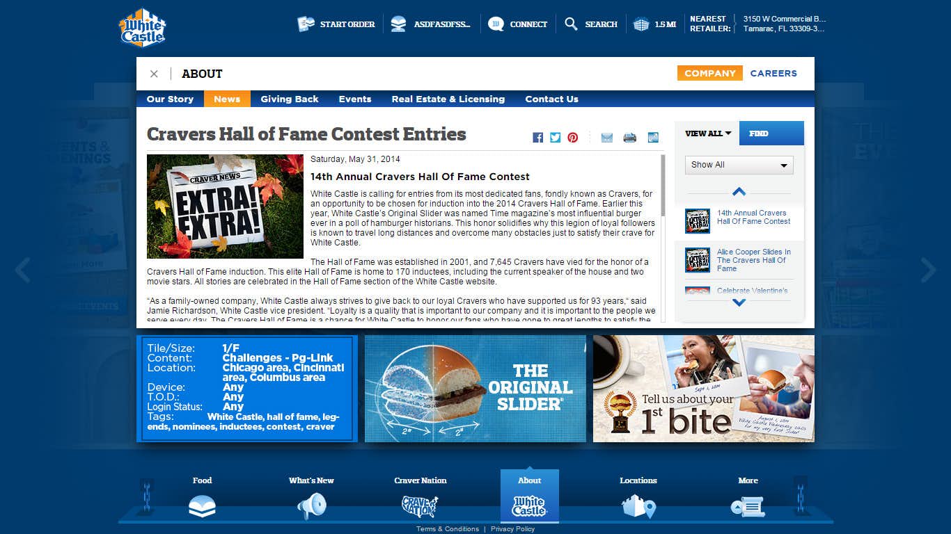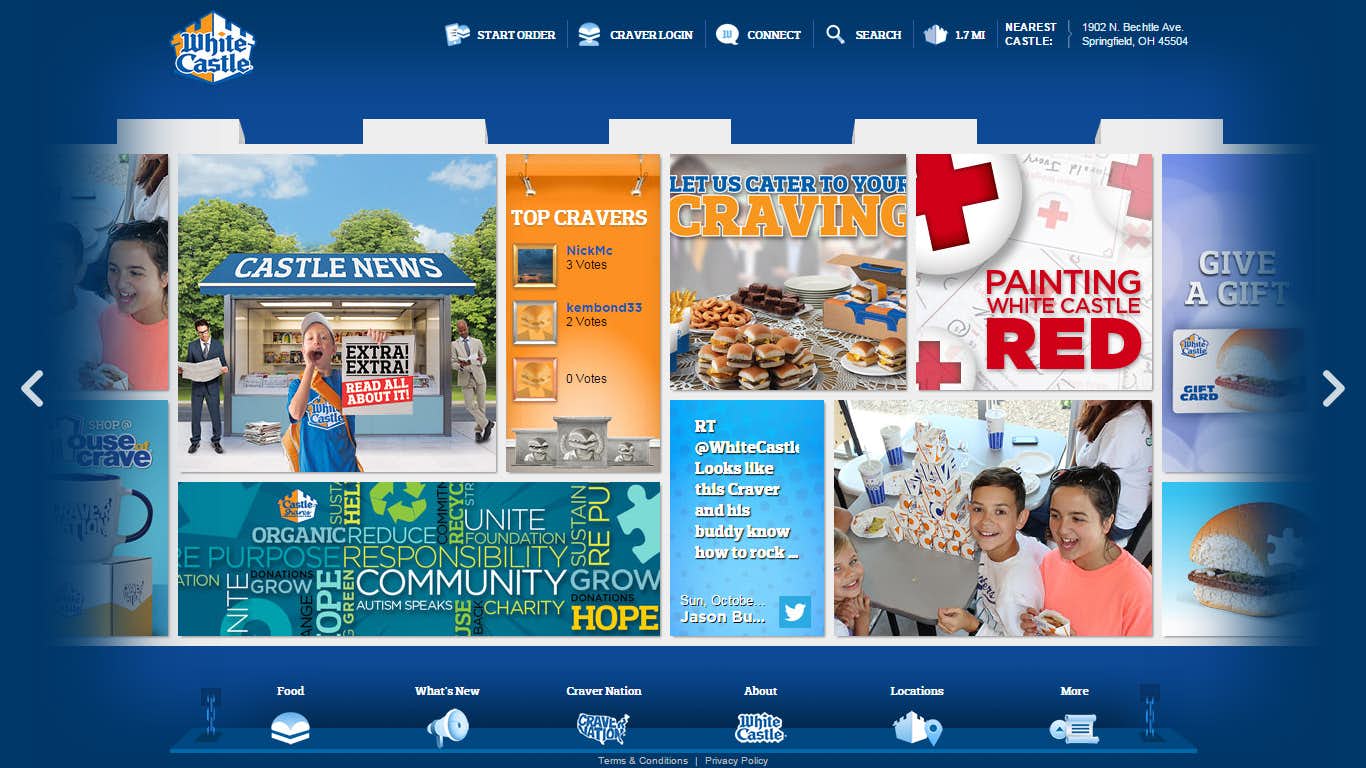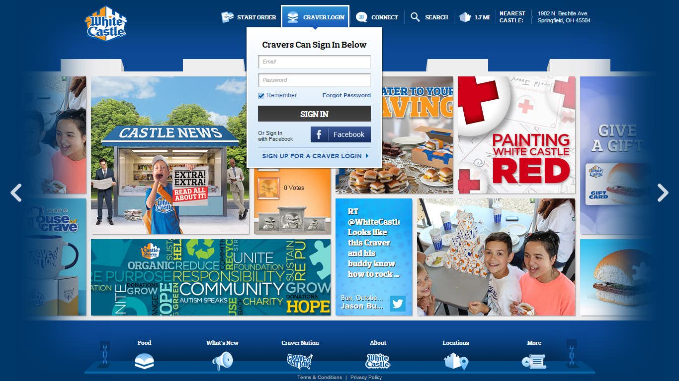 WhiteCastle by nature is very socially engaged with their customers, referred to as Cravers and even created a completely UGC (User Generated Content) driven web presence known as CraverNation. While a success it was often difficult to drive traffic to a different website and needing to maintain updates between two websites running two completely different architectures became difficult to manage. With the new WhiteCastle 2.0 we have completely streamlined the interaction between those who have been Cravers for years and those discovering WhiteCastle for the first time.