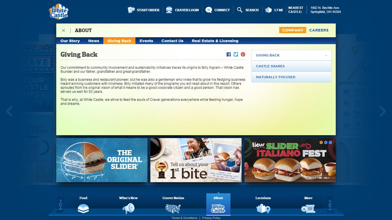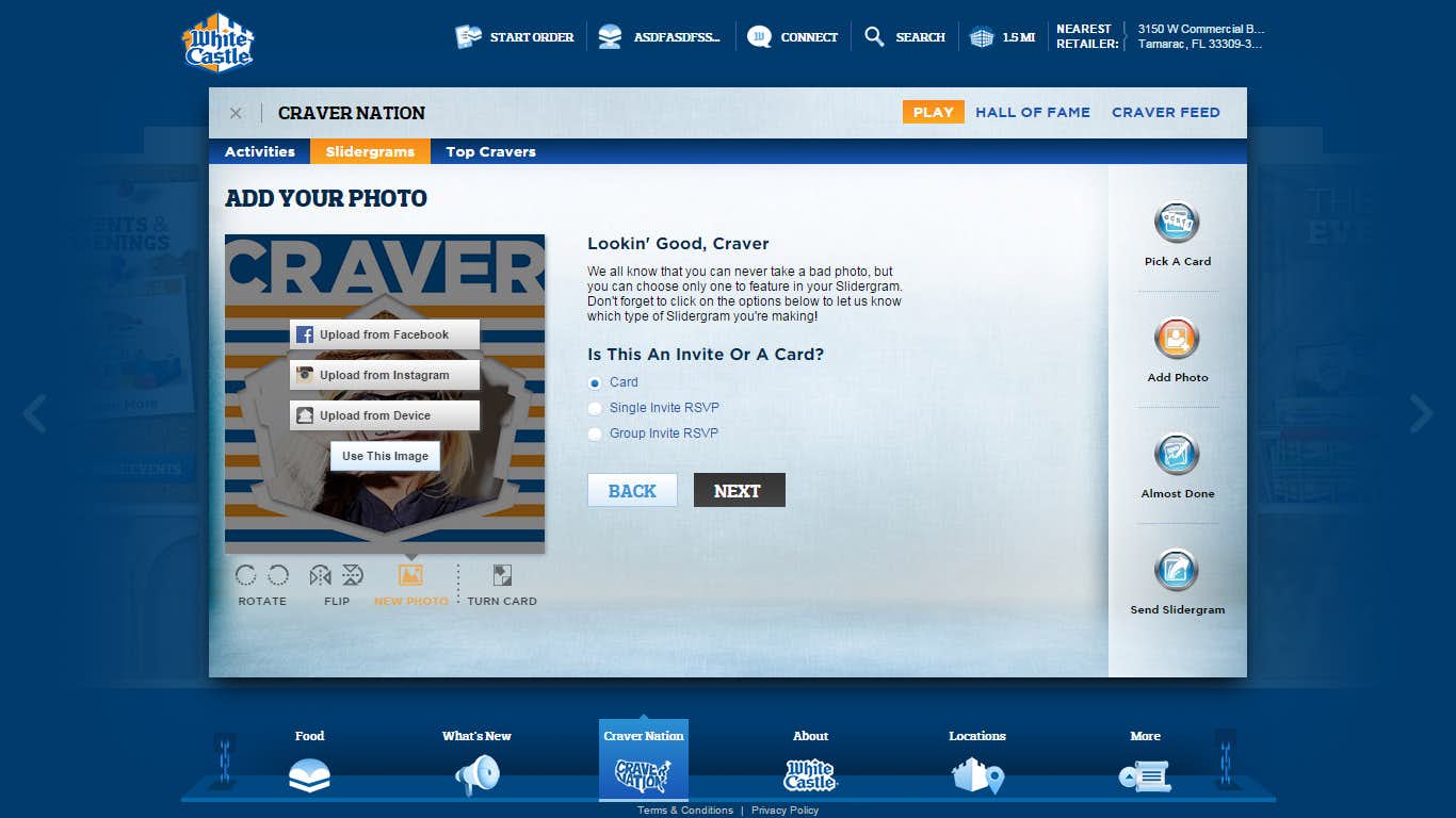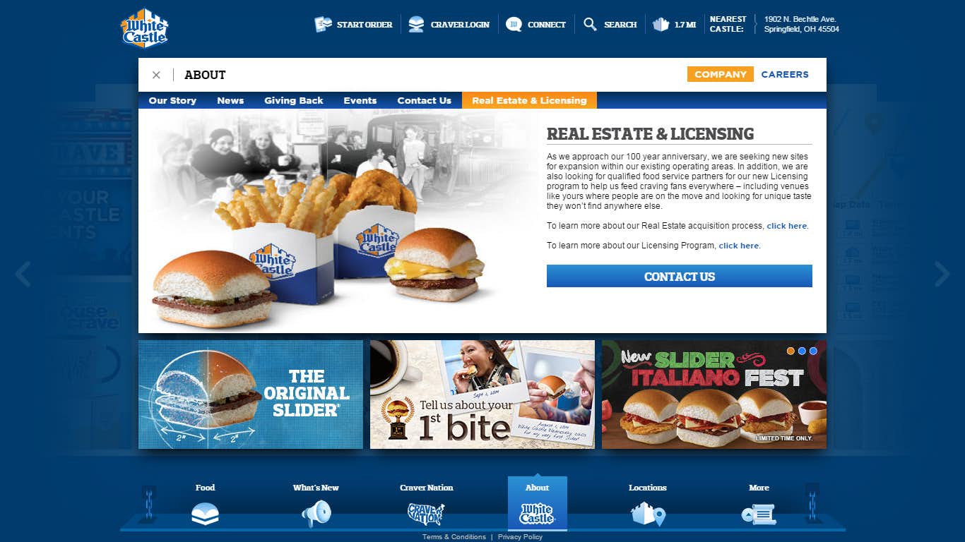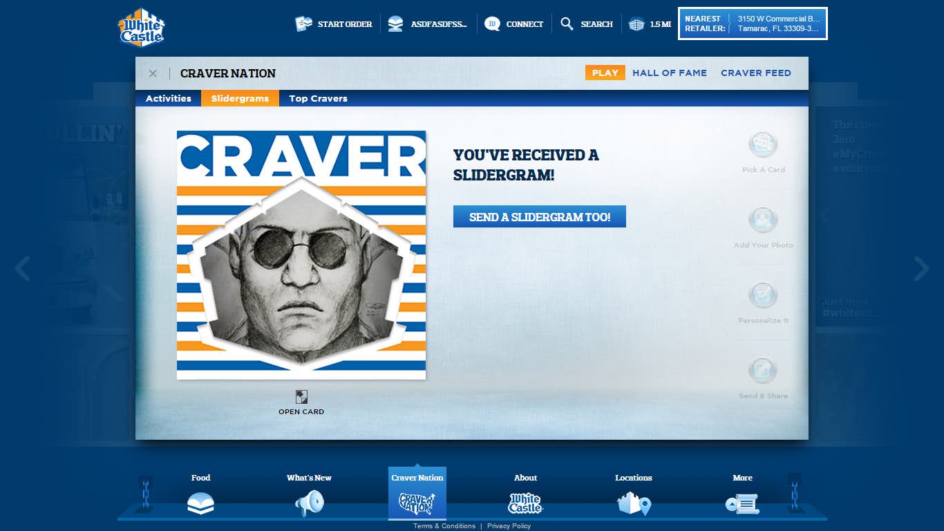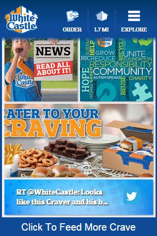 WhiteCastle by nature is very socially engaged with their customers, referred to as Cravers and even created a completely UGC (User Generated Content) driven web presence known as CraverNation. While a success it was often difficult to drive traffic to a different website and needing to maintain updates between two websites running two completely different architectures became difficult to manage. With the new WhiteCastle 2.0 we have completely streamlined the interaction between those who have been Cravers for years and those discovering WhiteCastle for the first time.