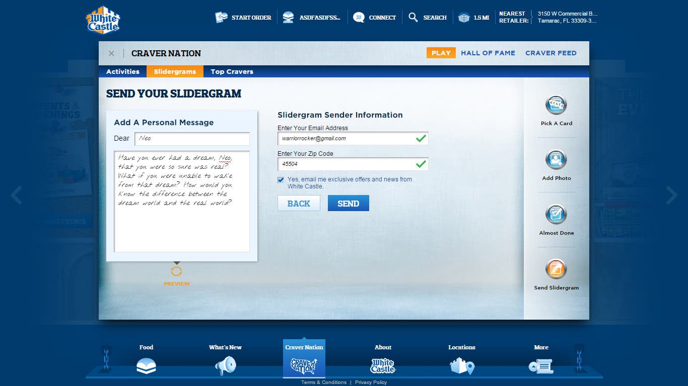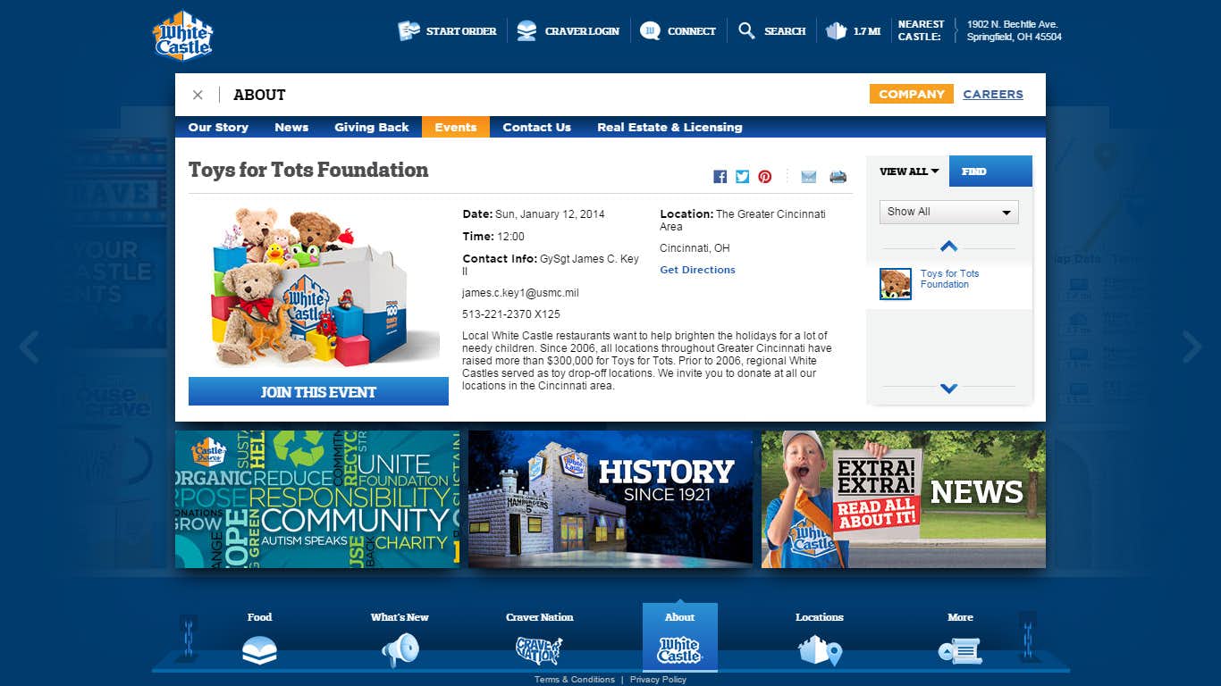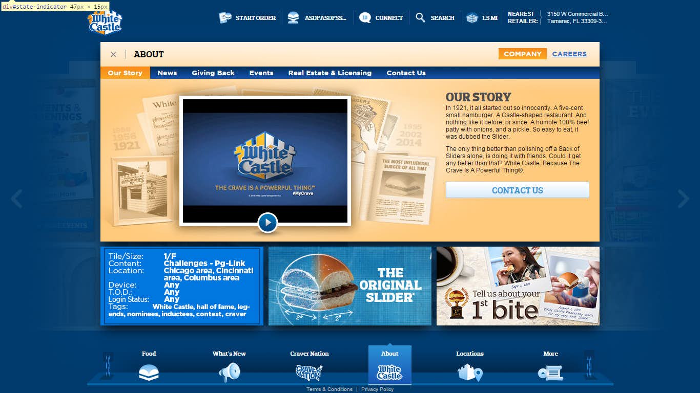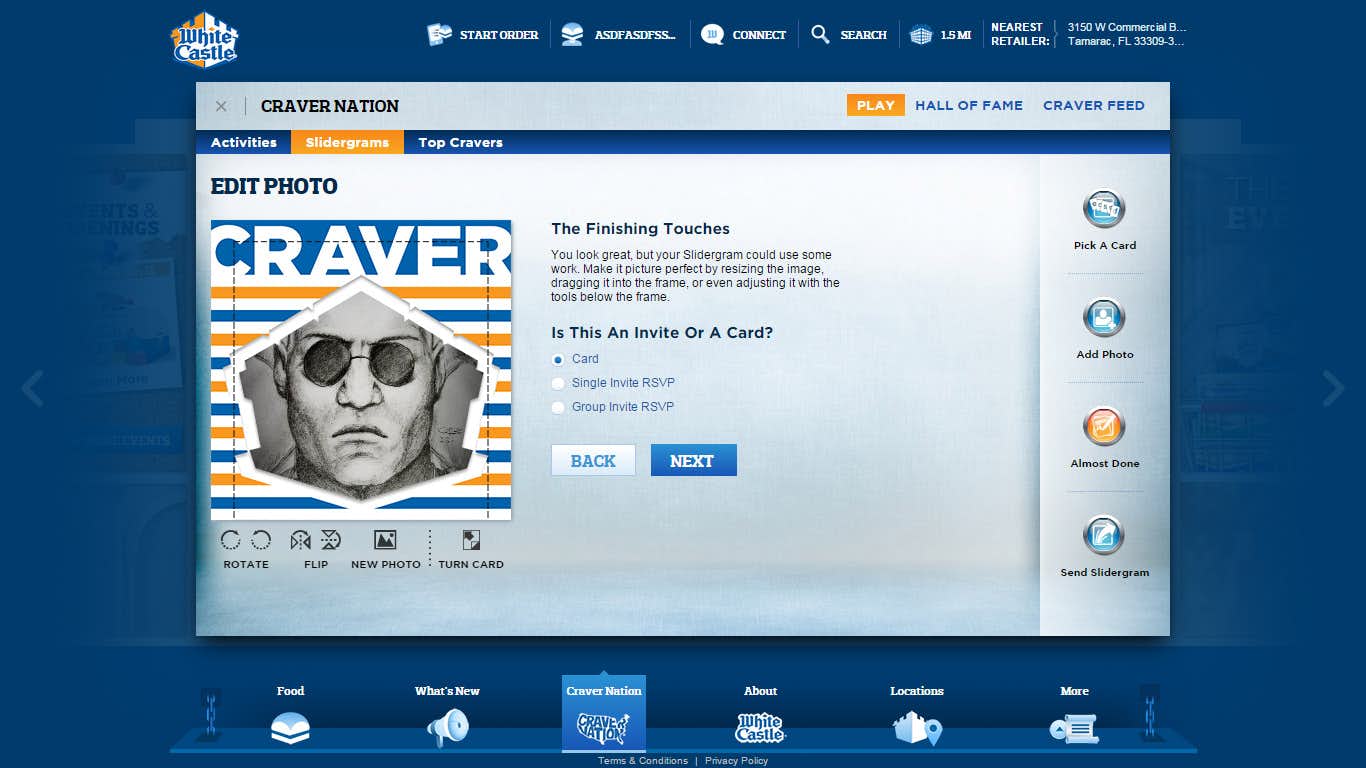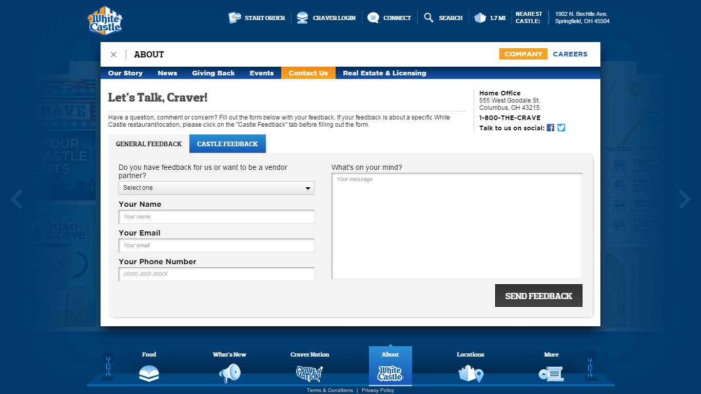 WhiteCastle by nature is very socially engaged with their customers, referred to as Cravers and even created a completely UGC (User Generated Content) driven web presence known as CraverNation. While a success it was often difficult to drive traffic to a different website and needing to maintain updates between two websites running two completely different architectures became difficult to manage. With the new WhiteCastle 2.0 we have completely streamlined the interaction between those who have been Cravers for years and those discovering WhiteCastle for the first time.