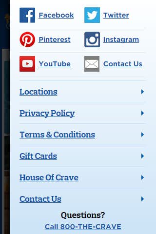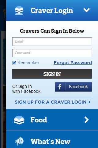 Most of the Utilities live inside the mobile navigation menu and allows for a shared design for items such as the Craver Login and Social Connect utility. These items expand and collapse to reduce the amount of scrolling the user will need to find the item or component they are looking for.