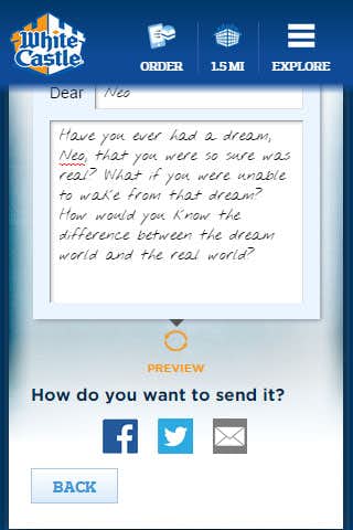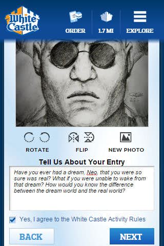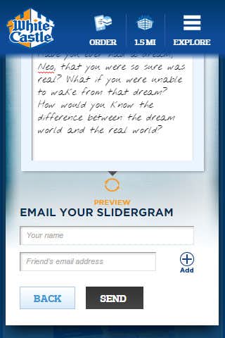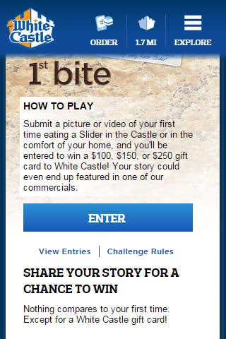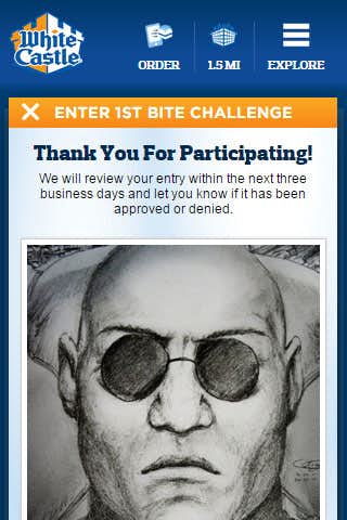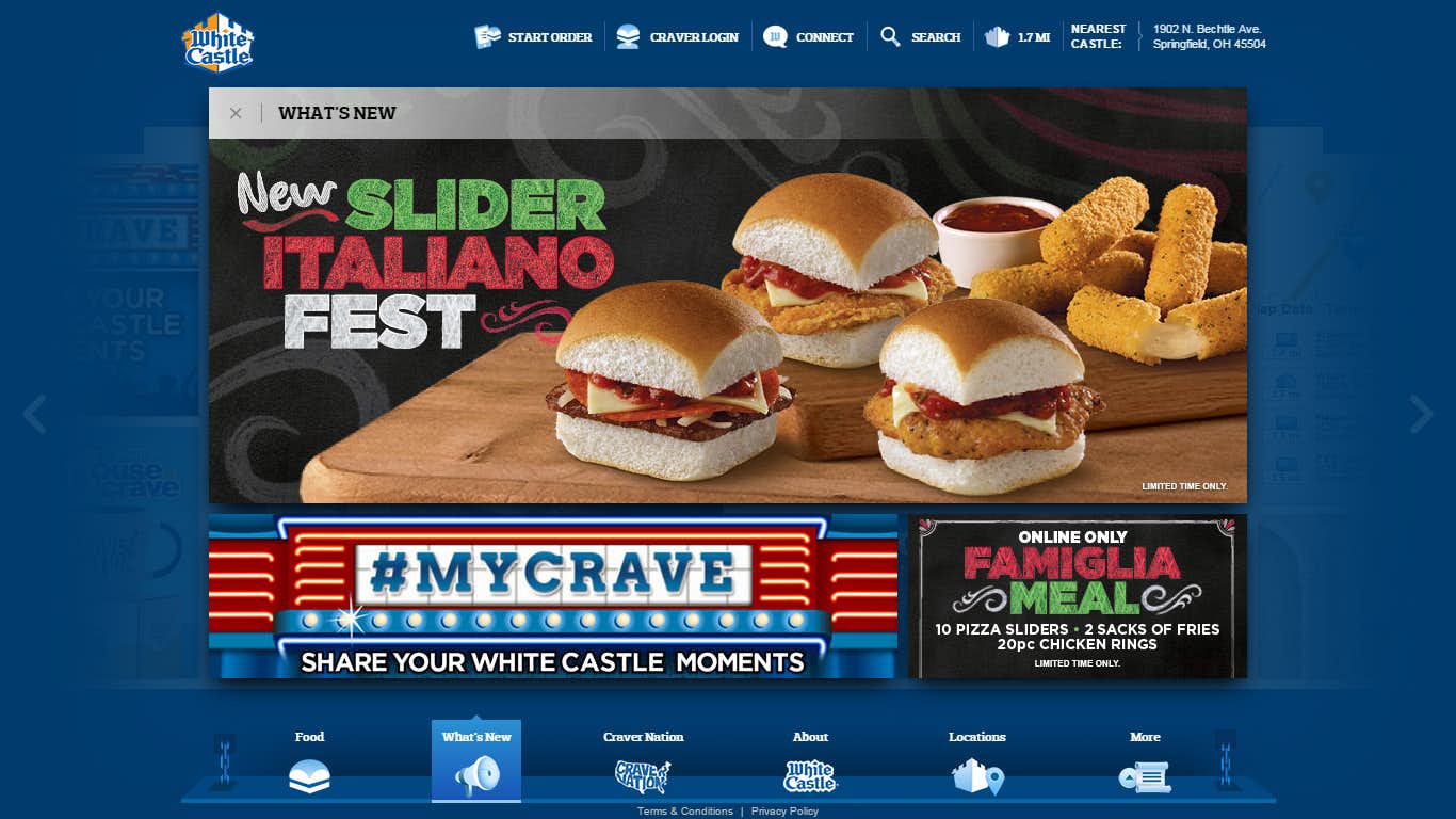All trademarks and artwork of the White Castle website are property and copyright of White Castle and Zimmerman Advertising and may not be reproduced in any way for any reason with all rights reserved.