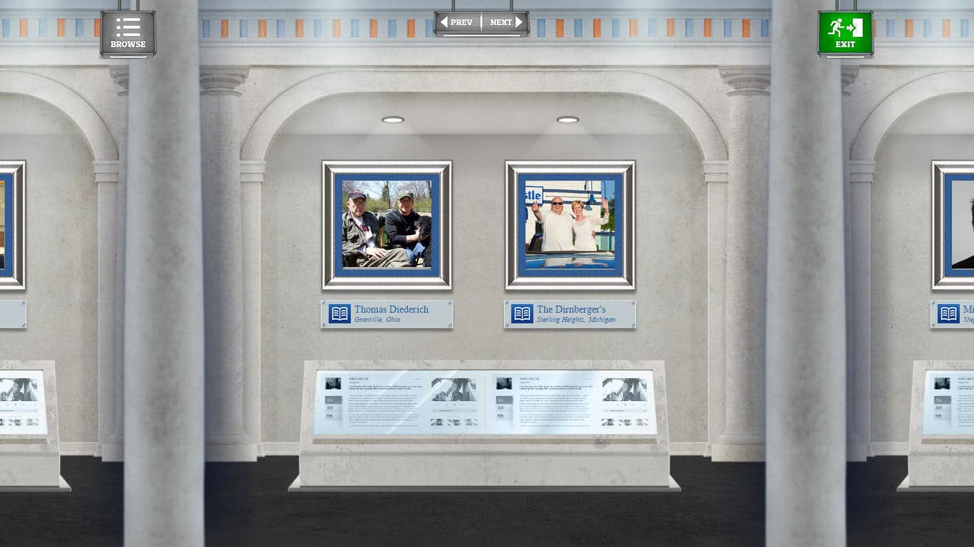 Scrolling left and right users are able to virtually walk through the Hall of Fame and explore the various inductee sections. This is a full parallax experience, known as the effect of multiple layers moving at different rates creating a 3D perspective effect such that objects move relative to your current viewing angle.