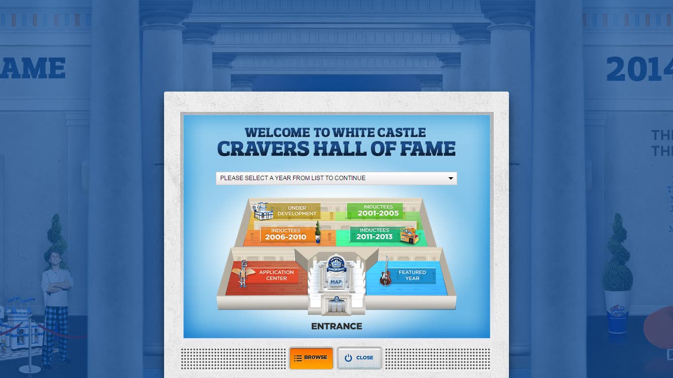 Over the years WhiteCastle has honored various individuals and groups that have performed Craver Hall of Fame worthy acts. With the new new site WhiteCastle wanted to bring their physical Hall of Fame to the web in an immersive experience that really does the Hall of Fame justice.